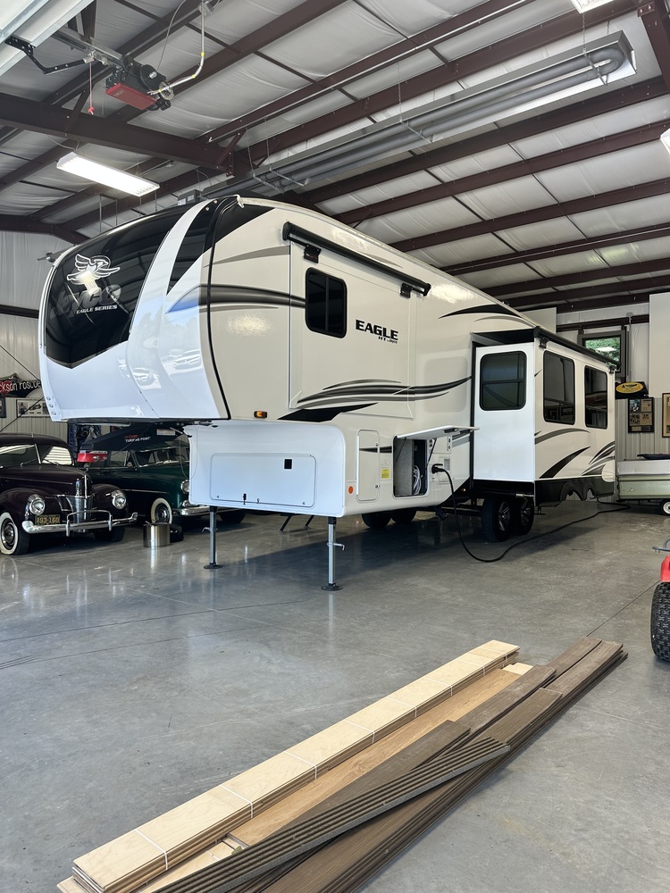 The 2023 Jayco Eagle HT 29.5BHOK is a top-of-the-line fifth wheel with luxurious amenities and innovative features. Jayco is known for producing high-quality RVs, and the Eagle HT is no exception. The 29.5BHOK model offers plenty of space for the whole family with a bunkhouse layout and a spacious living area. One of the standout features of the Jayco Eagle HT is its construction. The exterior is built with fiberglass sidewalls and a Magnum Truss Roof System for added durability and protection against the elements. Inside, you'll find premium finishes and modern design elements that create a comfortable and stylish living space.The 29.5BHOK floorplan includes a master bedroom with a queen-sized bed, as well as a bunkhouse in the rear with multiple sleeping areas for kids or guests. The living area features a large sofa and dinette, perfect for relaxing or entertaining. The kitchen is equipped with high-end appliances, solid surface countertops, and ample storage space.Additional features of the Jayco Eagle HT 29.5BHOK include a spacious bathroom with a shower, LED lighting throughout, and a premium entertainment system. With a GVWR of 12,250 lbs, this fifth wheel is towable by a variety of trucks and SUVs, making it a versatile option for travel.Overall, the 2023 Jayco Eagle HT 29.5BHOK is a fantastic choice for anyone looking for a luxurious fifth wheel with plenty of space and upscale amenities. Whether you're hitting the road for a weekend getaway or a long-term adventure, this Jayco model is sure to impress.