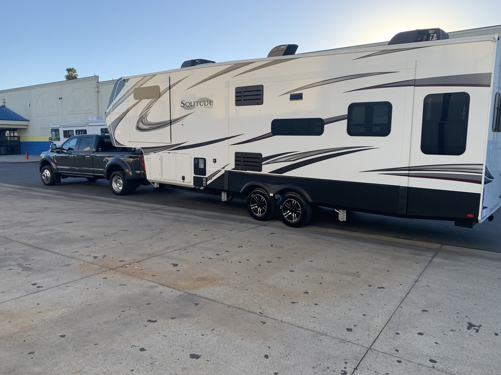 Large open floorplan with 3 slideouts. Front bedroom, central kitchen, rear living area. Excellent condition with light usage. Warranted for full time living. 1-1/2 years left on factory frame warranty, transferrable to new owner.