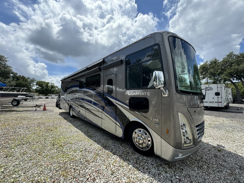 Nearly brand new 2024 Thor Luminate CC35 Class A. This unit has the upgraded suspension, wheels, and engine that give it a much better drive. The double slides provided a very spacious family room area. Drop down cab bed, king bed in the back, and both dinette and sleeper sofa pulled out to a bed. The upgraded exterior paint allows the RV to last longer without any fading of the paint. The gas water heater pushes out hot water within seconds. Reclining theater seats, 4 tv’s, LED lights, and USB ports everywhere. This is truly an awesome unit.