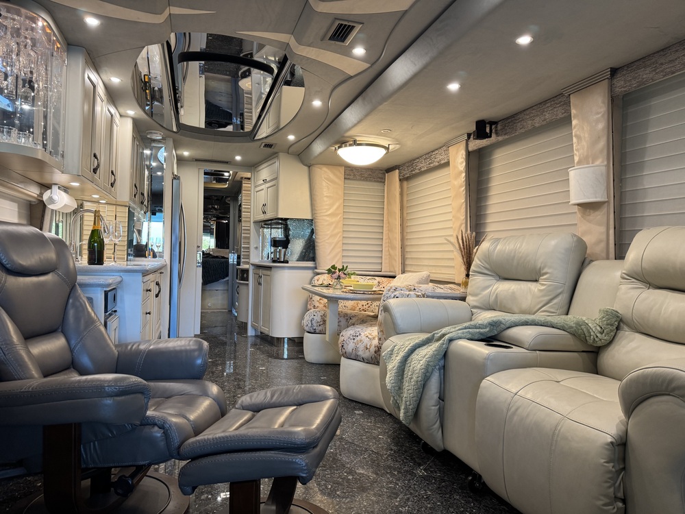 Also offered at Imperial Luxury Coach in Daton, OH - That is where we bought it. He is helping us get it out there. This 3 owner Coach is in great condition. There are a few small things that can be done, but the Detroit 60 runs like a top with all new belts and such. New tires as of Oct 2023. Read list below of items that have been done in the last year. 2 Girard awnings on each side and they all fully extend. 3 AC units. Here is everything else we have done. Prevost repairs/replace/preventative done By Prevost & Trawick in Fort Worth. Rear slide air bag replaced Rear Air lines adjusted new valves, and drain cock. Windshield arms replaced ,Replaced all air bags, drag link and p/s arms 3 axle Alignment Replaced Air springs, drag lines x3 and all air spring assembly replaced, Replaced crank sensor and oil pan gasket, Replaced transmission output shaft seal and pinion seal,, Replaced fan gear box and clutch, Replaced drive axle rotors with bearings & races on both sides. Replaced all calipers and brake pads on steer and drive & tag axels. Replaced exterior lights, front upper marker lights, low and high beam headlights, fog lights and side clearance lights, Replaced all bay door shocks, Replaced front and rear mud flaps Installed new front door locking mechanics with new keys, Added new fire extinguisher, Level 2 engine lube service, included level one service plus differential fluid, coolant filter, power steering fan gear box fluid, Grease ISS A-arm Ball joints, grease steering linkage, brake component as required, grease tag axle lifting rod, inspect wheel seals and shocks. Replaced air dryer assembly, Repaired all auxiliary air leaks, Replaced refrigerator ,New galley fan in kitchen New 11 alpine dash radio and back up camera ,New TV in salon Disabled the drop down TV above the cab Could be used for storage. Repaired touch panel lighting, Replaced all house batteries and the floor underneath them. Replaced Chassis batteries, Replaced alternator, Replaced back plane for breakers (in basement) and installed new breakers, Replaced water filter housing, installed new filter and pressure tested. Replaced wood main bloc with laminated wood, Replaced fan in battery bay ,Replaced D2 air governor, Replaced generator fan Replaced almost all air lines. Installed Airforce one tow car braking system. BASICALLY A BRAND NEW EVERYTHING. Asking $295,000. Located in Lone Oak, TX, and housed inside the entire time we have owned it. Never smoked in and we dont have any pets. Make an offer! 9032686347. Please call me. Gen@gengolden.com or 903-two six eight-634seven