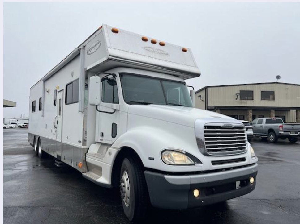 2007 Renegade Dual Slide Columbia Coach, Dual Generators, (1) 12.5 Diesel Onan and (1) 12KW Diesel Onan, Big Slide In Living Room and Slide Out of The Rear of Bedroom, King Bed, Dark Woodwork, Big Flat Screens, Side Isle Private Mid Bath Floor Plan, Big bathroom & Shower, Glass Cooktop, Microwave Oven, 4 Corner Auto Leveling, Back-Up Camera, (2) Sleeper Sofas, Over Cab Sleeper Bunk, Dinette Sleeper, Black Leather Seating, A/C, Gas Heat, Power Awning, 30K Hitch, Glad Hands, Generators Have Just Been Serviced, Available Today. For additional information and pricing please call Ricahrd Freeman 405-640-2366 or Michael Brotherton 214-202-0884 or Royce Lee Freeman 405-831-9594 or Erica Enders 713-299-7598 or Alan Cape 573-259-0666 Elite Motorsports, LLC