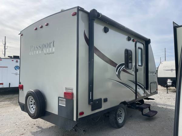 This rear bath Passport Express model 151ML features a front sofa and Murphy bed.
