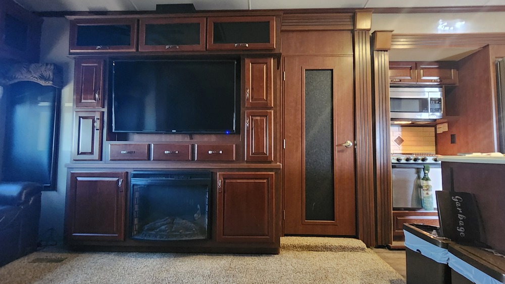 Fully liveable! King size Sleep Number bed, washer/dryer in master bedroom, Full size residential fridge with ice maker, small dishwasher etc.2016 Alfa Gold 5th wheel. Model #2905SH. SH means side hauler as it has a "motorcyle garage" with powered lift in the rear driver side slide out. There is a roll up door to access the motorcycle and lift system. The lift could be removed to add bunk beds if more sleeping quarters are needed. More features : All Cherry cabinets, not veneer over plywood Washer/Dryer. Island kitchen with Dishwasher Residential size fridge w/ice maker. Inverter for fridge. Gas range/oven. Microwave/convection oven. King size Sleep Number bed w/storage below. Dual AC. Triple LPG tanks. 4 slides. 3 TV. DVD Surround. Dual recliners. Large pantry. 6 jack, Auto leveling system. Dual grey water tanks. Spacious storage area. Power awning. 2 ceiling fans. Hide-a-bed couch. Optional 17" high capacity rims/tires. Faux fireplace. Moto garage w/roll up door and powered lift system!!! Upgraded auto adjust electric brakes. Rear back up camera compatible w/Ford in-dash system. New roof in 2023 (tree scrape)