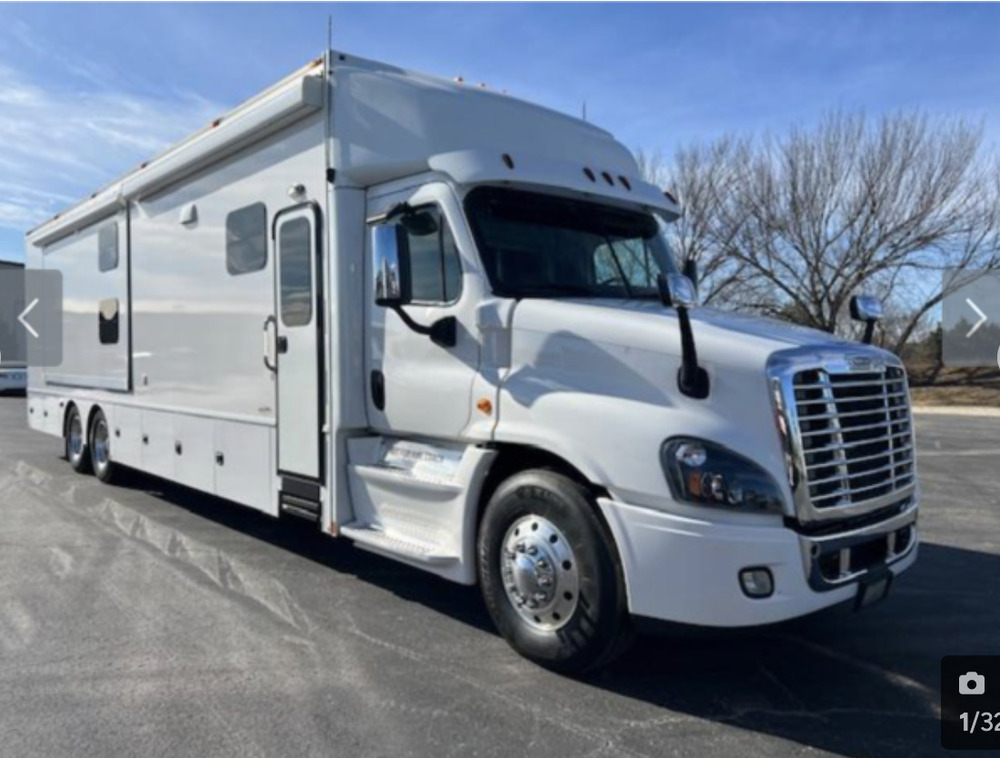 2018 Renegade Triple Slide 2 Full Bath Bunk Coach, 44K Miles, Automatic, 4 Corner Auto Leveling, Aqua-Hot, 3 A/C Units, Outside Refrigerator, Power Awning, Sleeper Bunk Over Cab, Hide-A-Bed Sleeper Sofa, 2 Bunk Beds, Glass Cooktop, Side By Side Stainless Refrigerator/Freezer, Convection Microwave Oven, Glass Tile Backsplashes, Tile Floors, Dark Woodwork, Flat Screens, Holding Tank Heaters, 12.5 Onan Diesel Generator (1277hrs), Professionally maintained. Coach is in excellent condition, Available today. For additional information and pricing please call Richard Freeman 405-640-2366 or Michael Brotherton 214-202-0884 or Royce Lee Freeman 4005-831-9594 or Erica Enders 713-299-7598 or Allan Cape 573-259-0666 Elite Motorsports, LLC