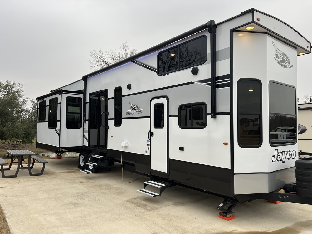 UNDER WARRANTY! The 2025 JAYCO JAY FLIGHT BUNGALOW 40DLFT is a luxurious park model RV that offers comfort and style for your travels. With a spacious interior and high-quality finishes, this RV is designed to make you feel at home wherever you go. The 40DLFT trim offers plenty of room for you and your family to relax and unwind, with amenities like a fully-equipped kitchen, multiple sleeping areas, and a cozy living room. The modern design of the JAY FLIGHT BUNGALOW combines functionality with elegance, creating a space that is both practical and inviting. Whether you're hitting the road for a weekend getaway or embarking on a long-distance journey, the JAYCO JAY FLIGHT BUNGALOW is sure to impress. With only 80 miles, this RV is practically brand new and ready for all of your adventures. Upgrade your travel experience with the 2025 JAYCO JAY FLIGHT BUNGALOW 40DLFT and experience the ultimate in comfort and convenience on the road.