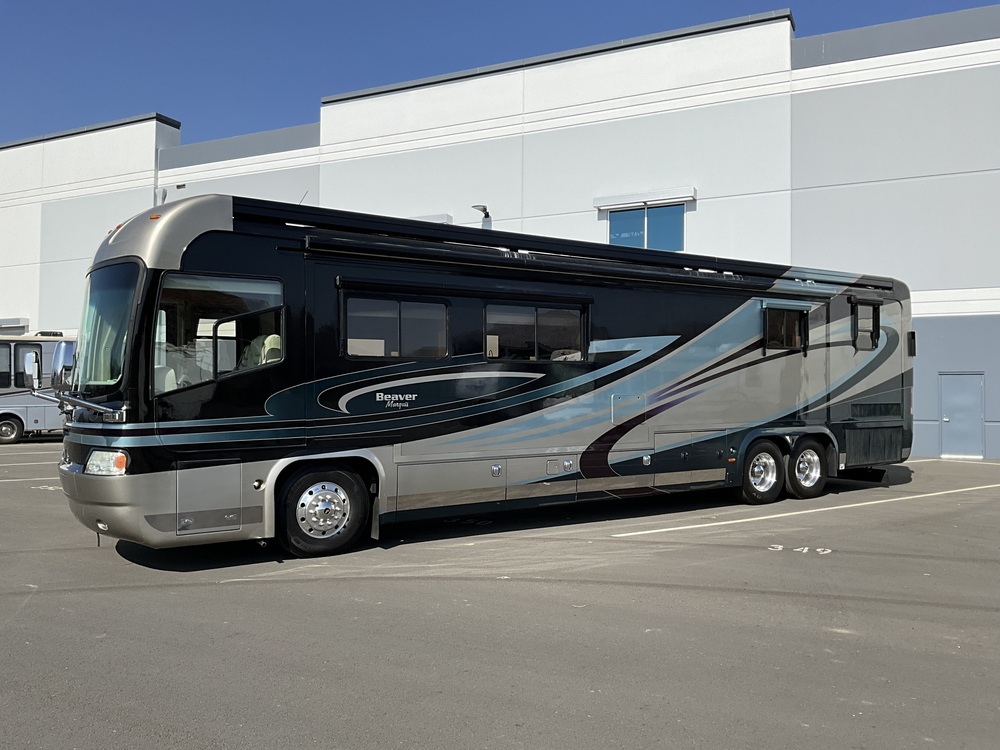 Moonstone IV was to be an update to the Moonstone III for 2010. This coach was built for the Tampa and Hershey RV shows as a new model demonstration and then Monaco decided to end Marquis production for 2010. As far as we know, it is the only one ever built. The big differences between the Moonstone III and the IV is a much larger "full wall" slide-out that really opens it up (the two opposite side slide-outs appear to be approximately the same size) and that the walk-in closet of the III was replaced by a great desk work area (great for remote work - reason I bought it). See pictures. Heated tile floors in Living, Kitchen and Bath areas Microwave Convection Oven - Recessed 2 burner Cooktop Residential Refrigerator Two Automatic Temperature and Rain Sensing "Fantastic-Fan" Power Roof Vents - in the Kitchen and Bathroom Leather Hide-a Bed Leather J-Lounge Ensemble and Booth Dinette King Bed with Tempurpedic Mattress Ceiling Fan in Bedroom Desk area in Bedroom Great for Office or Crafts! Full width Rear Closet and Stacked Washer and Dryer Tons of Closets and Drawers Throughout Roomy Side Bath with Large Solid Surface and Tile Shower New LCD TV in Living Area Recessed in Ceiling 32" LCD TV in Bedroom Blue Ray Home Theater Package Bose Systems in Both Living Area and Bedroom 2 Independent Systems Wired and Set-up for Exterior TV New Satellite System (new owner will need receivers and service agreement)