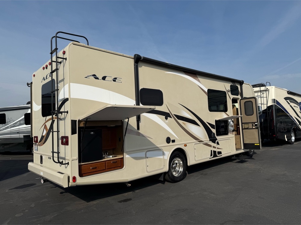 For quickest response call Kevin Fossum at Mike Thompson's RV 24/7 @ 714-660-7625 (NOT A TEXTABLE NUMBER)! EXTERIOR KITCHEN & TV! The 2016 Thor ACE 29.4 has two slide outs that provide plenty of space for the whole family with sleeping for 7-8 people if needed. It has all of the options you would expect including; LCD TVs, electric awning, plenty of storage and so much more.