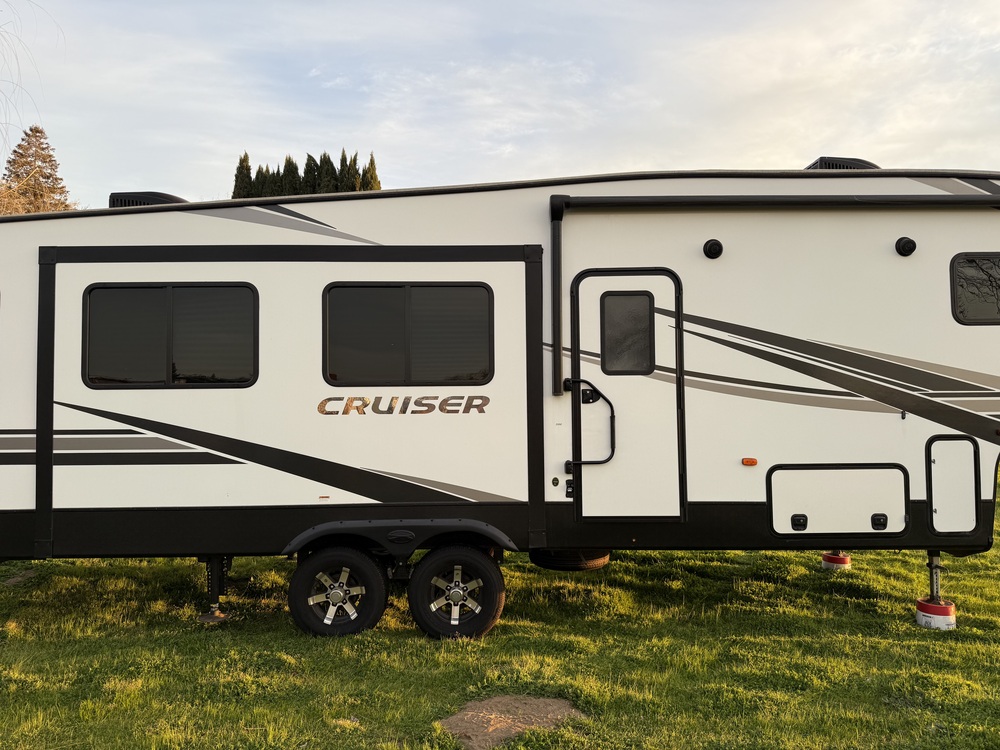 The 2020 Crossroads Cruiser 29SI is a luxurious fifth wheel trailer designed for all of your adventures. With sleek lines and modern design, this model is perfect for those looking for a spacious and stylish RV experience. The Crossroads Cruiser is known for its high-quality construction and innovative features, making it a popular choice among avid travelers. Inside, offers a spacious living area with ample seating and an electric fireplace that is perfect for relaxing after a long day of exploring. The kitchen is equipped with top-of-the-line appliances and plenty of storage space, making meal preparation a breeze. The bedroom is cozy and inviting, with a comfortable bed and storage options including under the bed storage for all your essentials.The exterior of the Keystone Cruiser features a sleek design with attention to detail, including large windows for natural light and ventilation. The outside features outdoor speakers and new Michelin tires. The fifth wheel design provides stability on the road and easy maneuverability, making it a breeze to tow to your next destination. This RV has an auto leveling system to help you get set up quickly. The black tank flush makes it easy to clean-up. Whether you're hitting the open road for a weekend getaway or embarking on a cross-country adventure, this fifth wheel trailer has everything you need to make your journey memorable and enjoyable.