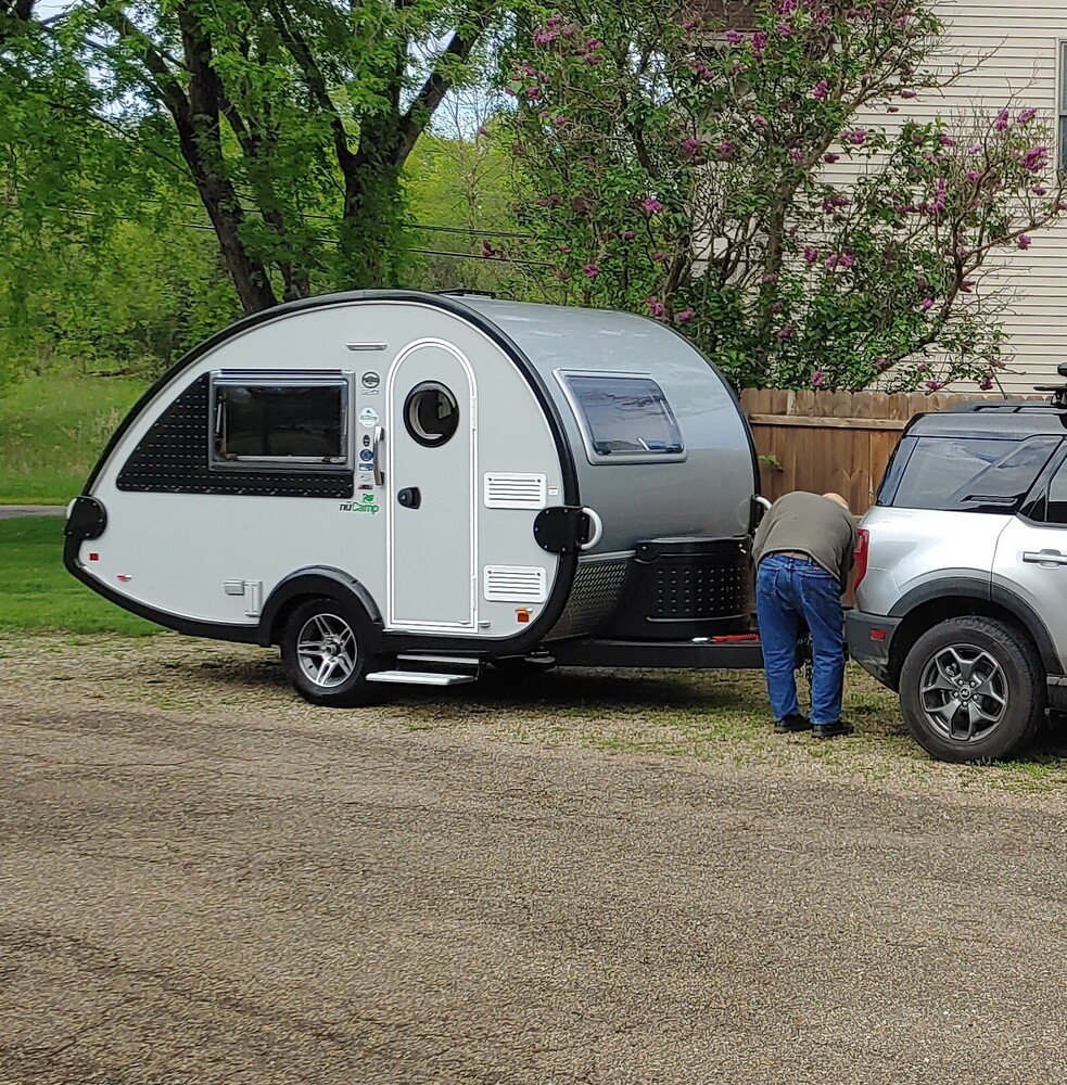 Galley kitchen, full bath, centralized heat and air conditioning, built-in stereo speakers, 23" TV, outdoor shower, setup for solar panel, large double bed, table conversion. Hand crafted cabinets. Brake system, 2,125 lb. chassis, 365 lb. cargo capacity, 175 lb. hitch weight, 15 ft. exterior length, 6 ft. exterior width. 8-gal freshwater tank. Gross weight 3000 libs. Barely used, like new, stored indoors. Comes with attachable tent and window awnings.