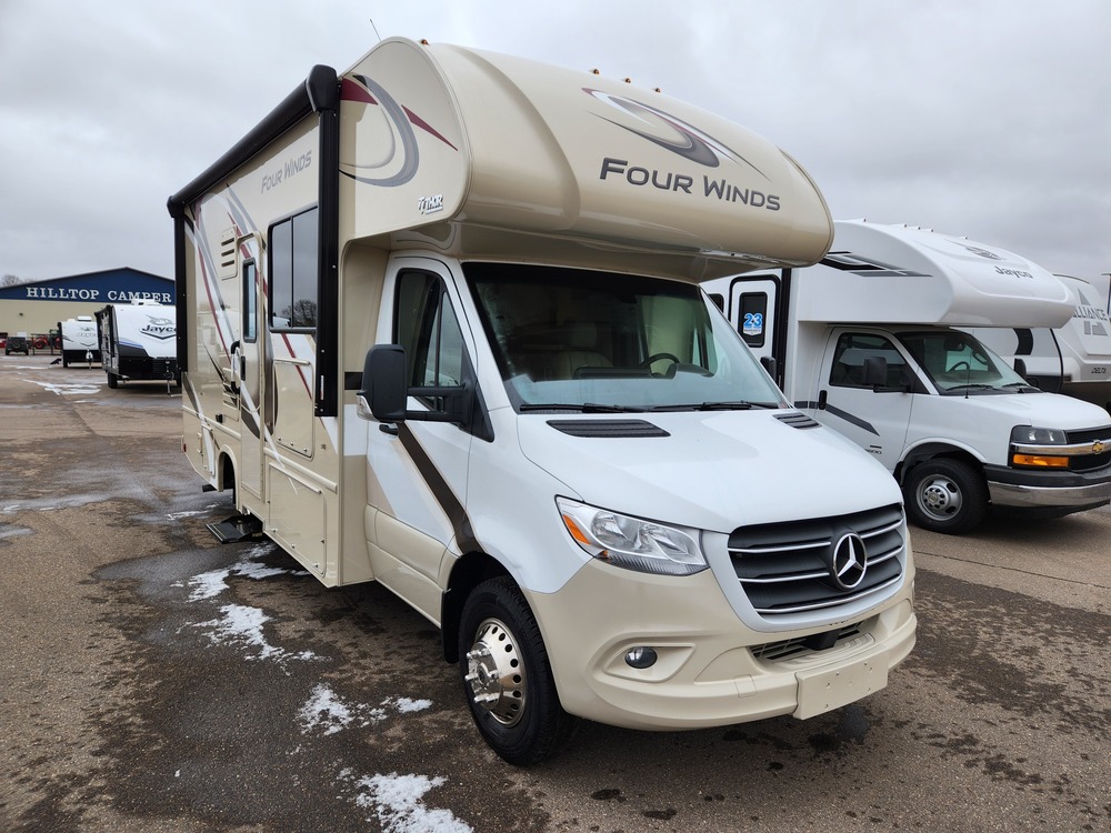 The Four Winds Sprinter from Thor Motor Coach provides the freedom that you deserve while setting yourself apart from everyone else! Bringing along all of your necessary camping items is easier than ever since there are plenty of exterior storage compartments. In the evening you will enjoy visiting with your family while sitting underneath the electric awning with integrated LED lights. Inside you will enjoy conveniences such as the residential vinyl flooring, laminate countertops, high-sheen cabinets with raised panel cabinet doors, and the Onan RV QG 3600 LP generator. The shower skylight adds plenty of natural lighting, and in the bedroom there is a USB power charging center for your electronics!
