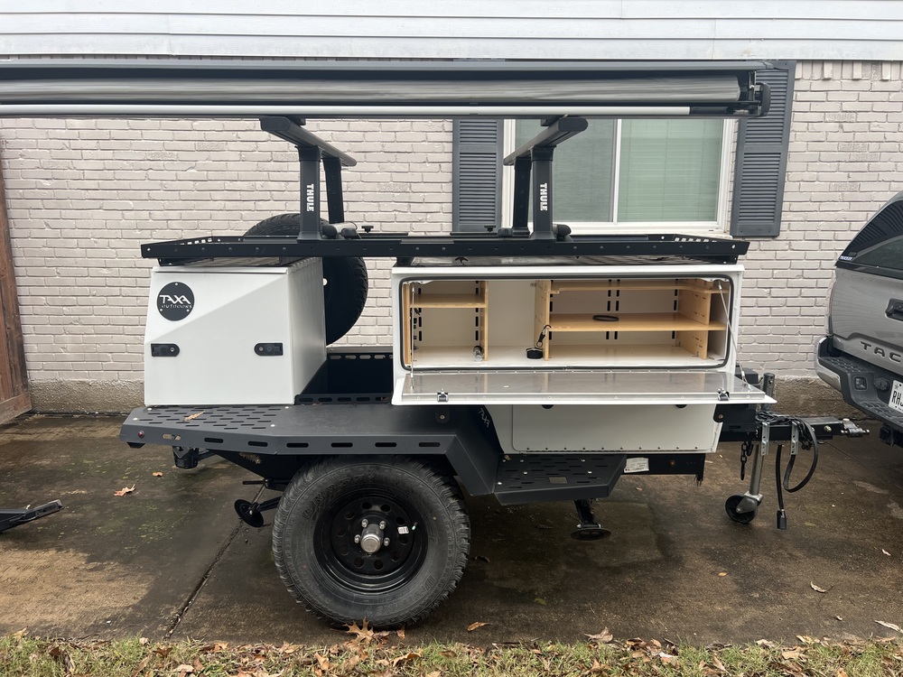 Very limited use. Thule Xsporter rack, Thule pro bars and foot pack. Thule 8ft Outland Box awning
