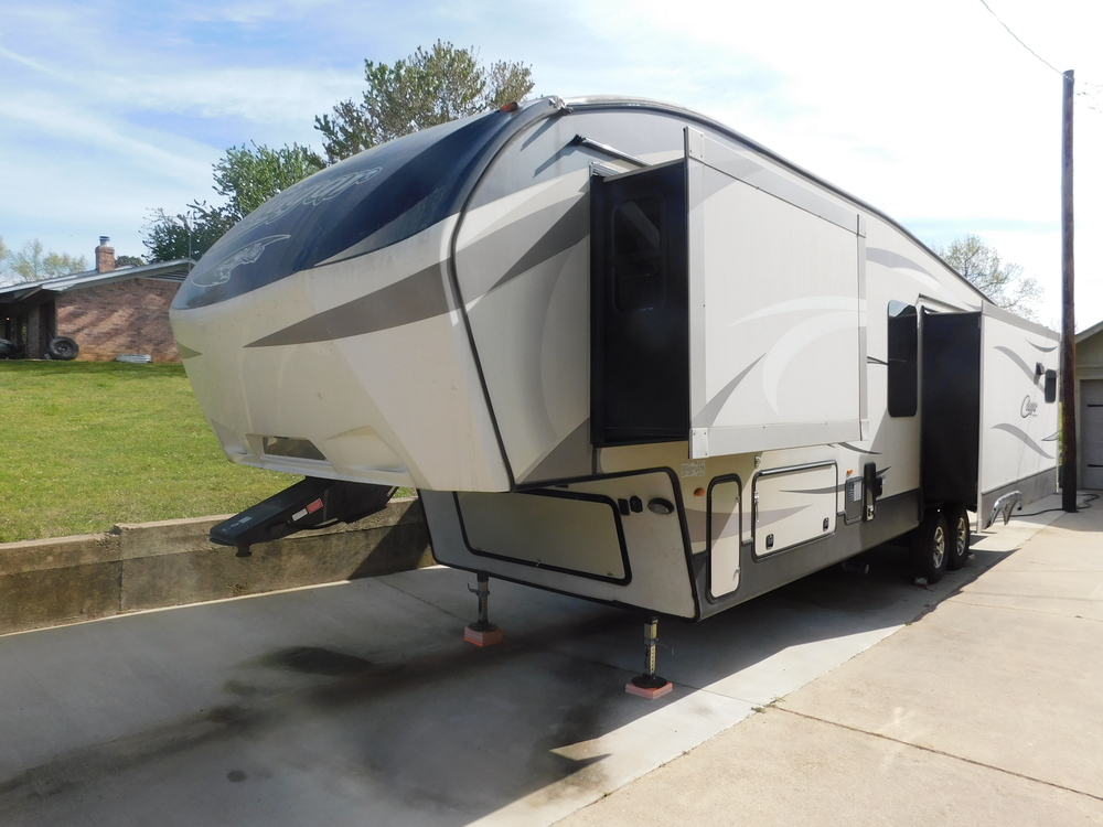 REDUCED to $28,000.00. Original owners. This unit was never smoked in. New 16" Carlisle tires. Roof was resealed March 2023. 4-point Lippert auto leveling system. 250# capacity rear fold town rack. Washer/dryer connections. Large kitchen panty w/ 3 shelves. Electric fire place w/ remote. LED ceiling. 12 cu ft Dometic side by side refrigerator. Very well maintained.