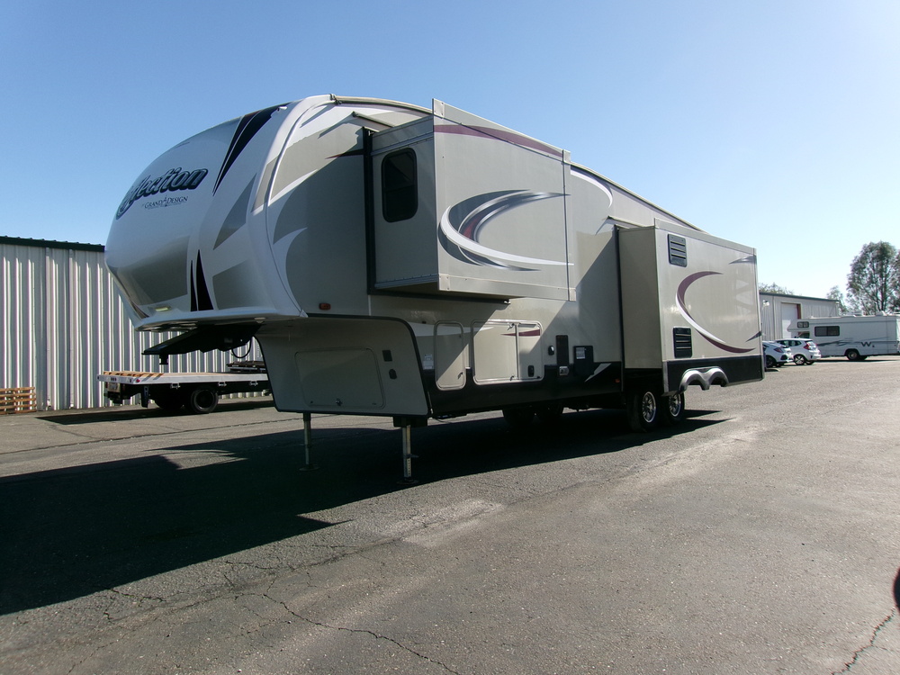 THIS 2017 GRAND DESIGN REFLECTION 337RLS 5 WHEEL WITH 3 SLIDES IS IN LIKE NEW CONDITION!!! THE GRAND DESIGN IS EQUIPPED WITH DOUBLE LEATHER RECLINERS, LEATHER SOFA BED, FIREPLACE, TV, HUGE PANTRY, KITCHEN ISLAND, DOUBLE REFRIGERATOR, WASHER/DRYER HOOKUPS, KING SIZE BED, DUAL AC'S, ALUMINUM STRUCTURE, ELECTRIC LEVELING JACKS, ELECTRIC AWNING, BACKUP CAMERA READY, AND MUCH MORE!!