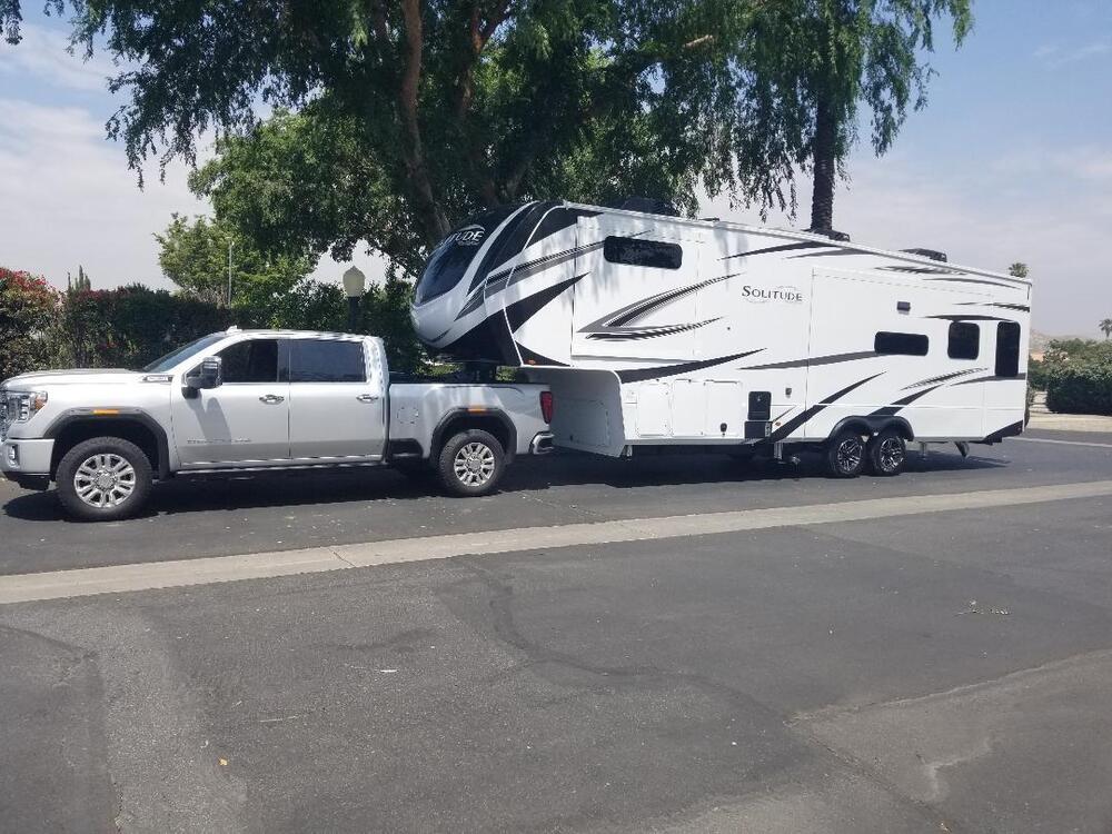 The Grand Design Solitude 310GK is a luxurious fifth wheel trailer designed for those who crave adventure without sacrificing comfort .and High Quality Craftmanship. This 2023 model is practically new and ready for any and all your Travel Adventures or Full Time Living. The sleek and modern design of the 360GK Grand Design Solitude is sure to turn heads wherever you go. Step inside and you'll find a spacious luxury well-appointed interior, perfect for relaxing after a long day on the road. This Solitude boasts top-of-the-line amenities, including a fully equipped Island Kitchen including a 20 CuFt Residential 4-door SS Frig with Ice Maker, Full Size Gas Stove/Oven, Convection Microwave, SS Sink AND large Pantry. The Living Room includes a Sleeper Sofa, 2 Recliners, Large TV and Fireplace/Heater with LED Lighting throughout. A very desirable Central Vacuum System is also included with this impressive interior. The well appointed bathroom includes a Large Shower with 2 separate spray nozzles and Fold Down Seat, Porcelain Toilet, and a Clothes Hamper. The well impressive Master Bedroom includes a wall mounted TV, VERY comfortable King Bed (with full underneath storage), large mirrored main closet doors, and a separate closet area with door (W/D Prep ready) and several large shelves, plus a 6-drawer dresser with a full length pop up jewelry compartment. The exterior includes also many impressive high end features including a 6-Point Automatic Leveling System, Large Fresh Water Filtration System, Heated / Enclosed Underbelly, Spare Tire, Upgraded Suspension including H-Rated 17.5 Cooper Tires (Nitrogen Filled), 2 ea 30 Gal Propane Tanks, Tinted Windows, Large Pass-Through Storage + Additional Front Storage Compartment, 2 Exterior Awnings will full LED Lighting, 3 Quiet A/C Units, 2 Solar Panels, and an 18 Yr (per Mfg Specs) Roof Structure, Gen Prep, and an Outside Shower. Tank capacities include Fresh Water (100 Gal), Grey Water (93 Gal), and Black Water (50 Gal).