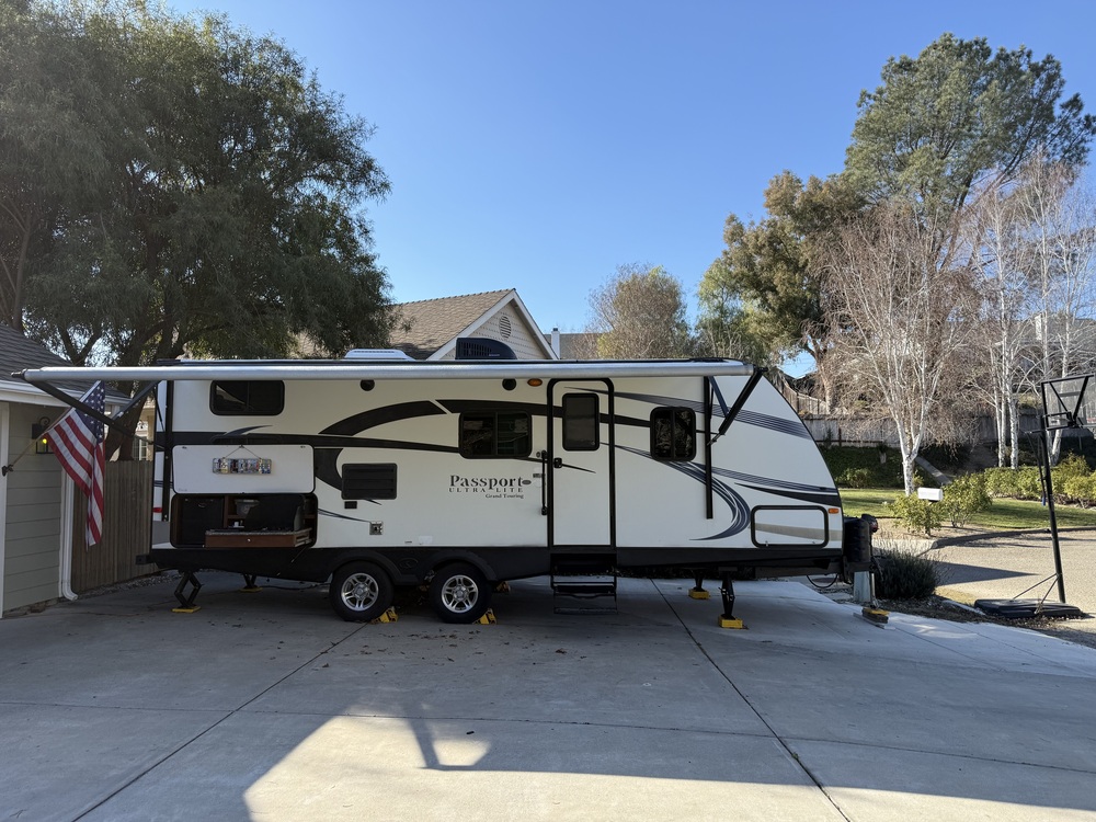 2015 Keystone Passport Grand Touring Ultra Lite 2400BH in very good condition. We have only owned for 2 years, but have put on 4 new tires, installed a battery monitor and cut off switch, installed a new front power jack, installed new smart tv, replaced the front cap (which had delaminated before we purchase it), put new lap sealant on roof and sealed all roof seams with EternaBond. Unit is very clean with minimal wear and tear, sleeps 7-8 with double over double bunks, a large u-shaped dinette that converts into a bed a a queen bed in the bedroom. Outside kitchen with small refrigerator, sink and two burner cooktop helps keep the cooking mess and smell outside. Outdoor shower, power awning with LED lights, one slide out. Good storage under bed and pass through at front of unit. Everything in good working order. Unit is 27' 10" long (box is 25) and has a base weight of 4,730 lbs.