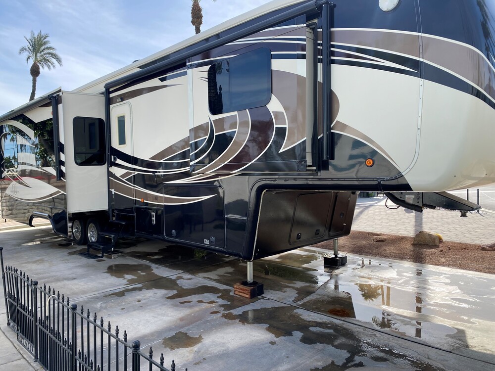 The DRV Mobile Suites 41RSSB4 is a luxurious fifth wheel trailer that was manufactured in 2016. This model is known for its high-quality construction and spacious interior, making it a popular choice for RV enthusiasts looking for a comfortable and stylish home on the road. The Mobile Suites line from DRV is designed for full-time living, with all the amenities and features needed for extended trips or permanent residency.The 41RSSB4 trim level offers a well-appointed interior with premium materials and finishes throughout. The living area is designed for relaxation and entertainment, with plush seating, a flat-screen TV, and a fireplace. The kitchen is fully equipped with modern appliances, a large refrigerator, and plenty of storage space. The bedroom features a comfortable queen-sized bed and ample closet space.Outside, the Mobile Suites 41RSSB4 is built with a durable and aerodynamic design, ensuring a smooth and stable tow. The exterior is equipped with awnings, outdoor speakers, and storage compartments for all your camping gear. With its sleek and modern look, this fifth wheel stands out on the road and at the campsite.Overall, the DRV Mobile Suites 41RSSB4 is a top-of-the-line fifth wheel trailer that offers unparalleled comfort, luxury, and convenience for travelers who demand the best. Whether you're a full-time RVer or a weekend warrior, this model is sure to impress with its spacious living quarters, high-end amenities, and reliable performance. Experience the ultimate in RV living with the DRV Mobile Suites 41RSSB4. please look at the build sheet for a full description of amenities.