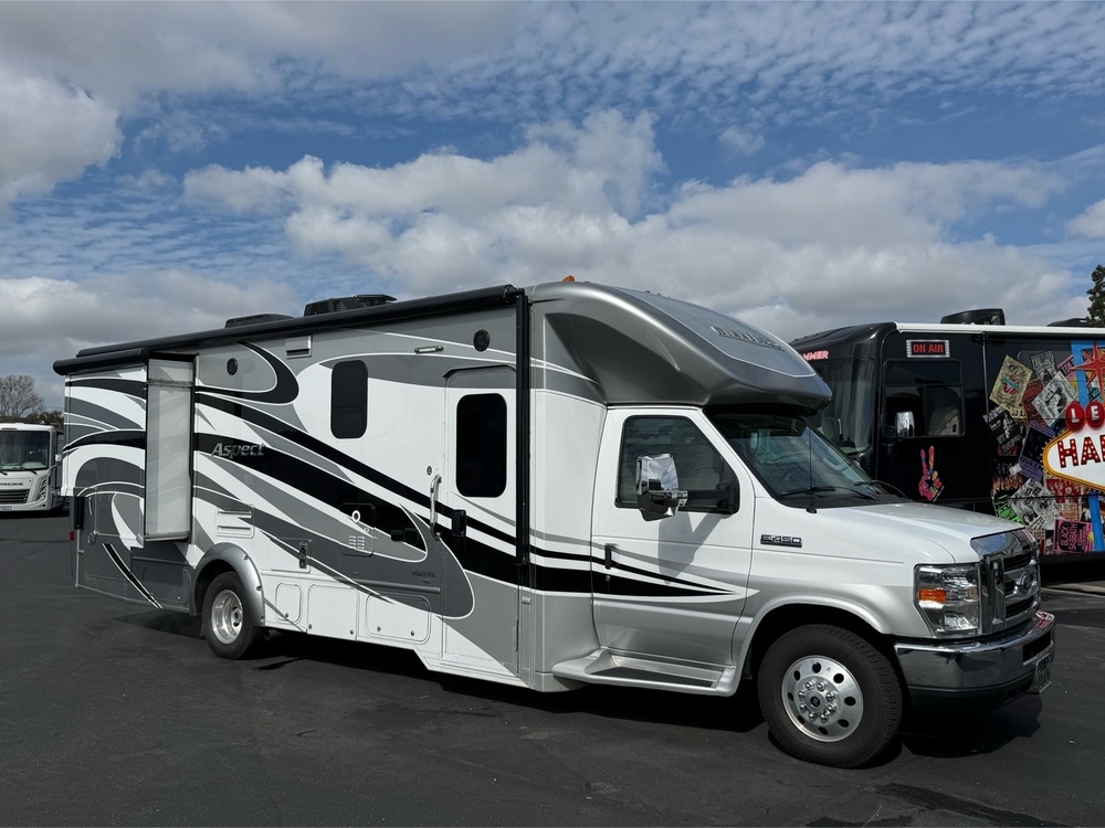For quickest response call Kevin Fossum at Mike Thompson's RV 24/7 @ 714-660-7625 (NOT A TEXTABLE NUMBER)! MASSIVE EXTERIOR STORAGE – FULL BODY PAINT! The 2017 Winneabgo Aspect 27K has two slide outs that provide for a very spacious floor plan in a small package. This coach is considered a B plus and drives like a small truck or van. It's on the E450 chassis and has plenty of carry capacity. It has all of the options you would expect including; LCD TV's, long electric awning, inverter, plenty of storage and so much more.