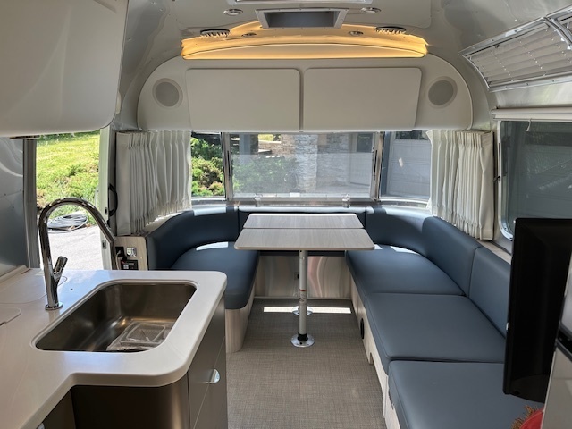 This is a description of a 2021 27 Ft FB Twin Globetrotter. Barcelona Blue with natural elm interior. It has the following features and warranties: Two AC units with 50 amp connection Tankless propane water heater Window awning package with ZipDee power awning TPMS tire pressure monitoring system Rear view camera Blue Ox weight distribution hitch Upgraded bedding Portfolio One extended service agreement for five years, expiring on 1/7/2027 and transferable to another owner Portfolio Protection tire and wheel protection until 1/7/2027 and transferable to another owner Appearance protection limited warranty that includes Cilajet paint/fiberglass protection, fabric protection, leather and vinyl protection, and extra interior protection for punctures, rips, tears and burnsThis is a high-quality and well-maintained trailer that offers comfort and convenience for any traveler. The price of this trailer is $79,900, recently reduced from $85,900 which is a great deal considering its condition and features.