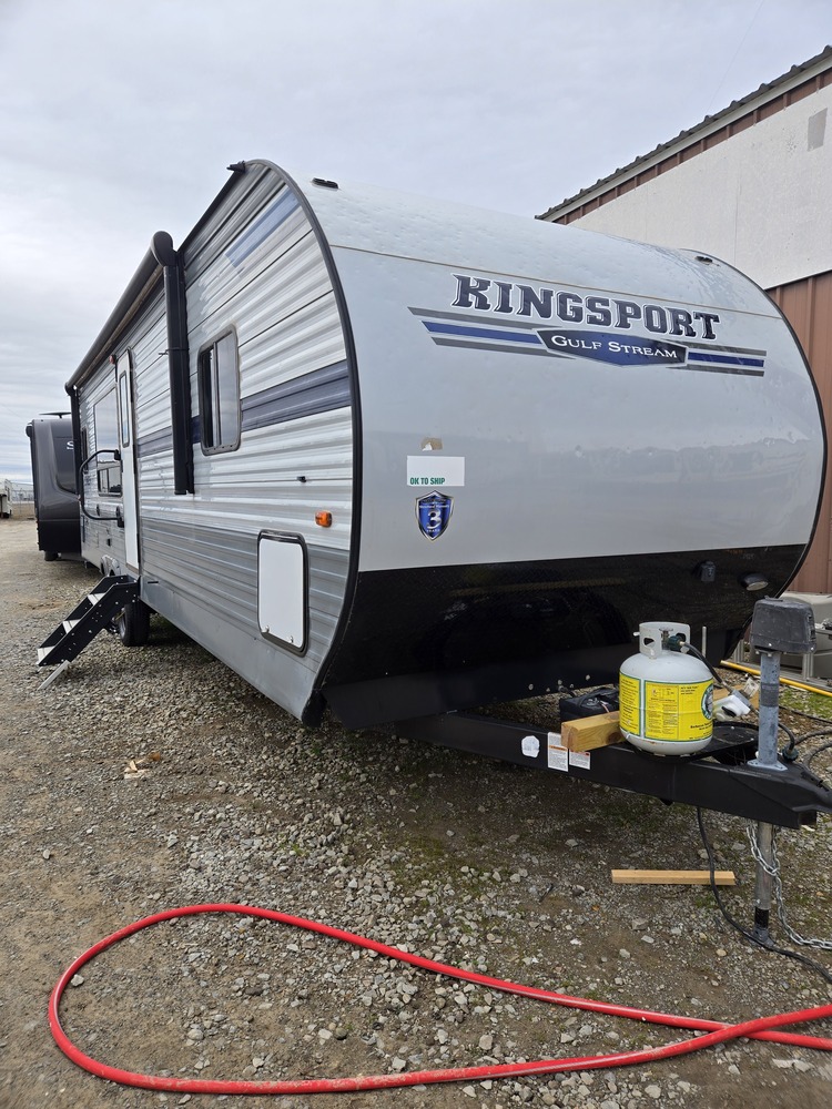 This 2021 Gulf Stream Kingsport 295SBW is an immaculately, well-maintained, 34-foot model with a power slide-out, Arctic Package, full kitchen with full-size fridge and enough room to sleep up to 6 people.