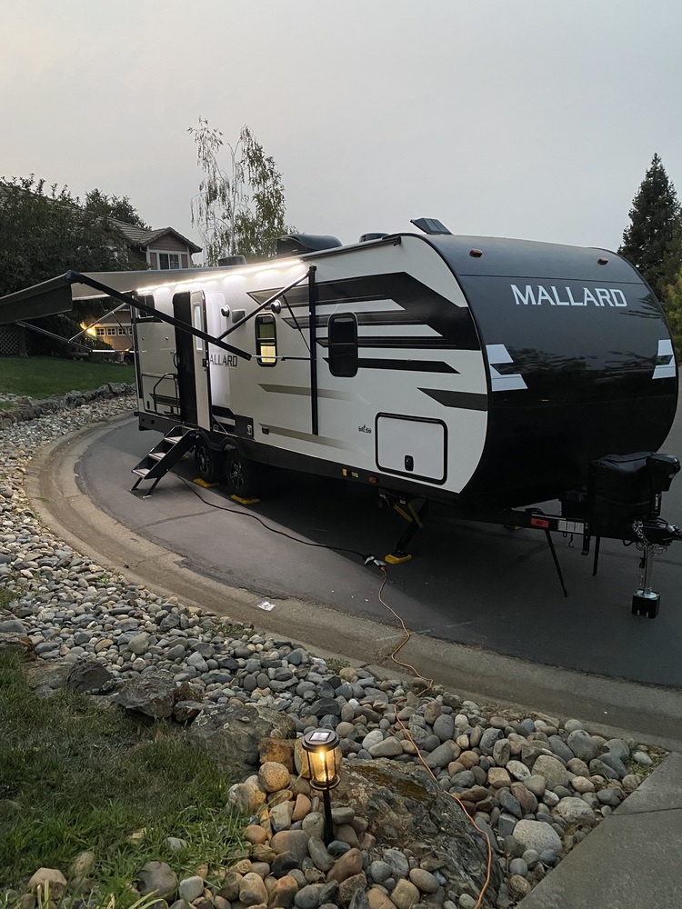 The 2021 Heartland Mallard M251BH is a spacious and well-equipped travel trailer perfect for family adventures. With only 2000 miles on the odometer, this like-new trailer offers plenty of room for sleeping, dining, and relaxing. The Mallard M251BH features a modern interior with high-quality finishes and furnishings. The kitchen is equipped with all the necessary appliances and ample storage space. The bathroom includes a shower, toilet, and sink for added convenience. The main living area is comfortable and inviting, with a large sofa and dinette that convert into additional sleeping spaces also included is a flat screen TV and electric fireplace. The master bedroom offers a cozy retreat with a comfortable bed and plenty of storage. Outside, the Mallard M251BH boasts a large awning equipped with LED lights, perfect for enjoying the great outdoors, out door mini kitchen with sink, counter and mini fridge. Also has a outdoor quick connection for propane BBQ (included) that mounts on a bracket on the rear bumper. Additions include winegards WIFI and TV , and furion backup camera. Also has electric scissor stabilizers and electric jack. Overall, this travel trailer is perfect for families looking to create lasting memories on the road. Experience the comfort and convenience of the Heartland Mallard M251BH on your next adventure.