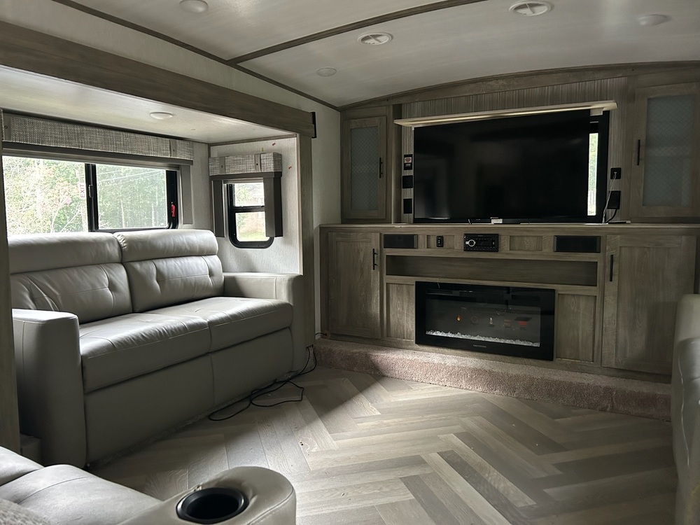 2022 Forest River Salem Hemisphere 378FL - Luxury Meets ComfortExperience the epitome of RV living with the 2022 Forest River Salem Hemisphere 378FL fifth wheel. This model is designed for those who refuse to compromise on luxury while exploring the great outdoors. With its spacious layout, premium features, and elegant design, this fifth wheel is perfect for families or couples looking for luxury in a home away from home or an extended period of time. Priced at $68,000 or best offer, this is your chance to own a piece of luxury on wheels.Key Features:Spacious Living: A front living room with panoramic windows, up to 65 TV, and fireplace offers a cozy yet luxurious space to relax or entertain.Gourmet Kitchen: Features an island kitchen with an extra-large refrigerator/freezer, oven, and a kitchen table with barstools for dining.Sleeping Quarters: Accommodates up to 8 people with its versatile sleeping arrangements including a loft above the Master Bedroom, and convertible sofas.Design and Durability: Constructed with vacuum bonded "Aluma frame" sidewalls, heated and enclosed dump valves, and an underbelly ready for four seasons of travel. The exterior boasts an Ivory performance colored fiberglass with Smoked Quartz Metallic accents.Interior Elegance: Hudson Wood agreeable grain cabinetry and Herringbone Shaw flooring blend style with functionality.Review Highlights:From RV Insider: "Luxurious and spacious, the 2022 Forest River Salem Hemisphere 378FL truly feels like home on the road.""The kitchen setup is unparalleled, making meal prep a joy even while camping."From RV Trader: "This front living room model has been one of our best sellers due to its innovative use of space and comfort.""The island kitchen is a game-changer, providing ample space and convenience for cooking."From RVT.com: "From luxurious fabrics to rich wood tones, the Salem Hemisphere is in a class of its own, offering both comfort and style.""It's not just about the looks; the wind-resistant design ensures a smoother ride and better gas mileage."Ease of Use: Dual entry doors, gas bottles, dual roof A/C units, bunks, and multiple sofa options make this RV versatile for different camping scenarios.Investment Quality: With a length of 42.30 to 43.00 feet, this RV is an investment in comfort and luxury, promising years of memorable travel.Safety and Efficiency: Features like the 7-way "rain defense" plug holder and extra-large pass-through storage ensure your adventures are both safe and convenient.The 2022 Forest River Salem Hemisphere 378FL isn't just an RV; it's a statement of luxury travel, designed for those who seek the best in their outdoor escapades. Whether you're planning a weekend getaway or an extended stay like we did, this fifth wheel promises to elevate your experience to new heights.