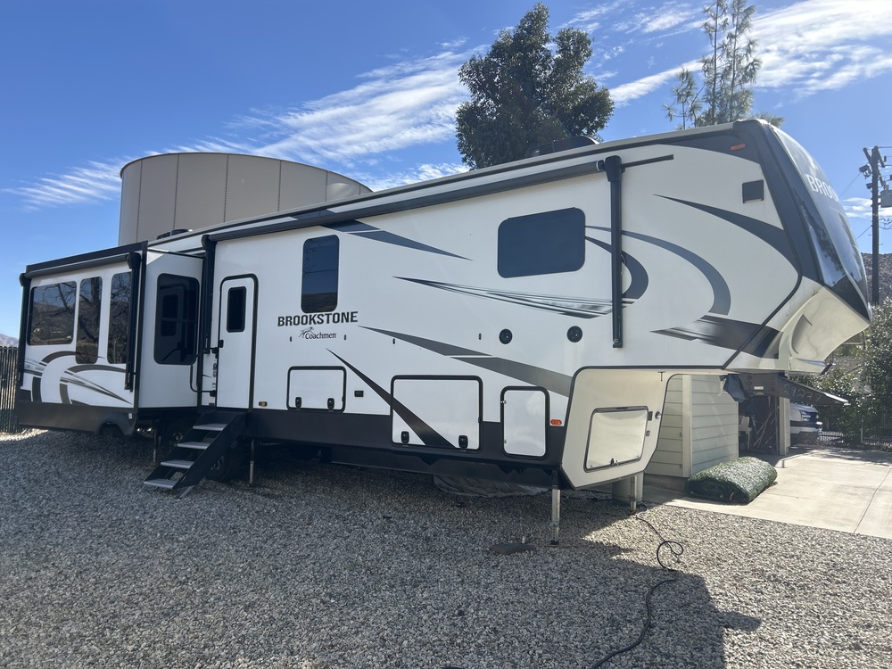 The 2022 Coachmen Brookstone 398MBL is a luxurious fifth wheel that boasts comfort, style, and functionality. With only 200 miles towed, this model is ready to hit the road and provide a top-notch camping experience for its occupants.The Brookstone comes from a reputable manufacturer known for producing high-quality RVs, making it a reliable choice for travelers looking for a well-built and durable unit. The exterior of the fifth wheel features a sleek design with modern accents, giving it a sophisticated and upscale appearance.Inside, offers a spacious and well-appointed living area with ample seating, like two recliners that include heat, massage, and lighting, a fully equipped kitchen with residential fridge, and a cozy bedroom with a king size bed and 50 tv. The trim level ensures that this model is equipped with all the latest amenities and features, making it an ideal choice for those who value comfort and convenience.Whether you're planning a weekend getaway or a long-term road trip, the Coachmen Brookstone is equipped to meet your needs. From its stylish design to its functional layout, this fifth wheel is sure to impress even the most discerning travelers. With top-notch construction and attention to detail, the 398MBL is a standout option in the world of RVs.Overall, the 2022 Coachmen Brookstone 398MBL is a top-of-the-line fifth wheel that offers a perfect blend of luxury, comfort, and functionality. With its brand new condition and low mileage, this model is ready to provide years of enjoyment for its lucky owners. Take your camping experience to the next level with this impressive and well-equipped RV.