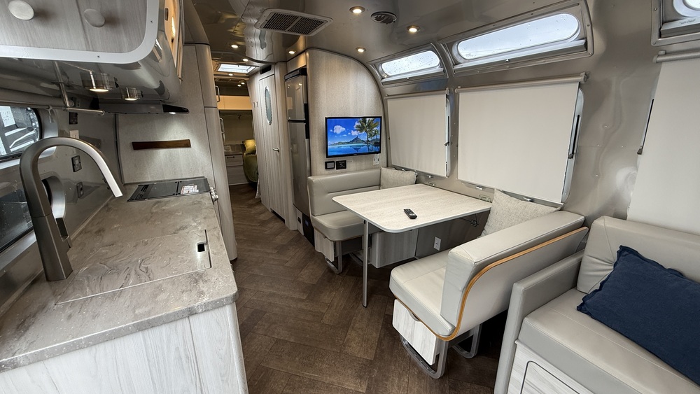 This unit features the Convection Microwave oven, which replaces the conventional over, tank-less hot water heater, JL Audio system, two smart TVs, USB and 110 outlets, Wireless back-up camera with 7" monitor, powered main awning and memory foam mattresses. It also has the factory installed 200ah Battle Born lithium batteries with 300 watts of solar and 2,000watt inverter ($5,100 option). Additional options added to RV after purchase is the Airstream Connected 5G wifi router and antenna ($2,000+), a Southwire 50amp hardwired surge protector and a Micro-Air Smart RV thermostat. The interior is done in the Seashell color option. Original MSRP was $147,975. The 2024 Airstream International 30RB Twin is a luxurious travel trailer designed for long-term travel and adventure. Its sleek and modern design sets it apart from other trailers on the market, making it a popular choice for those who value style and comfort. The 30RB Twin model offers plenty of space for two to travel comfortably, with two twin beds that can be easily converted into a larger sleeping area if needed. The interior is beautifully appointed with high-end finishes and amenities, including a full kitchen with stainless steel appliances, a spacious bathroom, and plenty of storage space throughout.Towing the Airstream International is a breeze, thanks to its lightweight construction and aerodynamic design. The trailer is equipped with all the necessary safety features to ensure a smooth and secure journey, including anti-sway technology and electronic stability control. With its durable build and reliable performance, the Airstream International is a true investment in quality and convenience.
