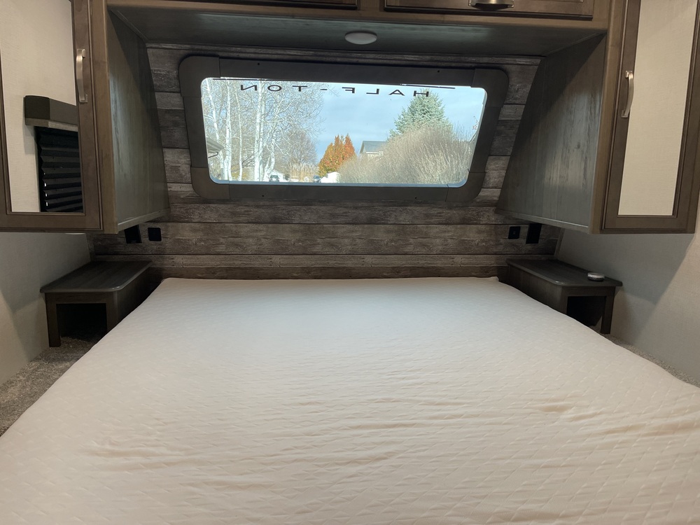 Used onsite while we built a home. In great shape. A king hotel suite on wheels. The warm weather package is amazing. The electric fireplace made for great winters.