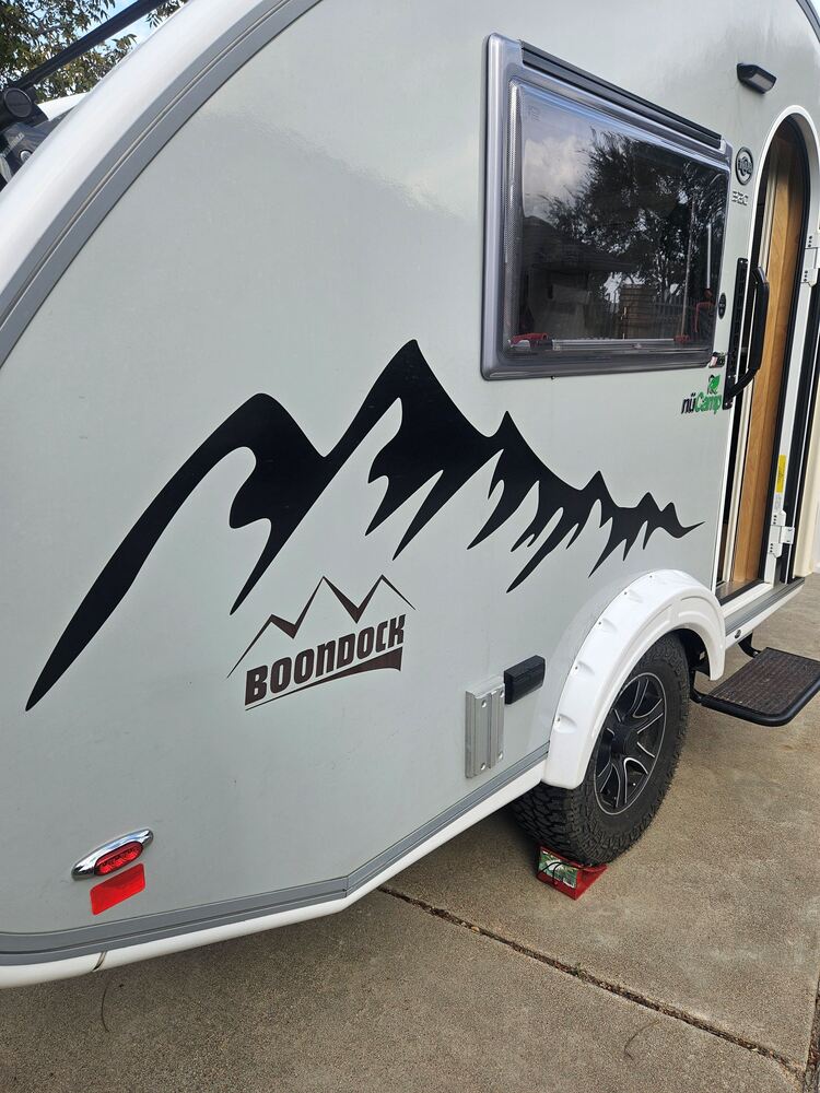 This BOONDOCK model has these additional features:* Solar Package with Victron Solar Controller with smart phone app.* 15" Sport Rims * Aggressive Off-Road Tires* Aluminum Utility Platform* Boondock Entry Handle & Graphics* Custom Rear Aluminum Cage* Heavy Duty Entry Step* Heavy Duty Pitched Axle* Made to Order Boondock Fenders* Yakima Roof RackAdditional Features:* Jenson Blue Tooth Sound System with excellent speakers* Fantastic Fan* Alde heat and hot water heater* Nautilus Water Distribution System* Dometic Vented AC