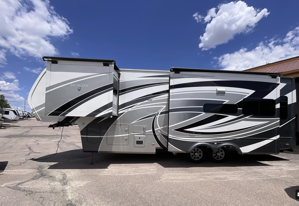 The 2022 Vanleigh Beacon 34RLB is a luxurious fifth wheel trailer that offers the ultimate in comfort and style for your travels. This camper comes with almost every option available, (see build sheet). Includes: