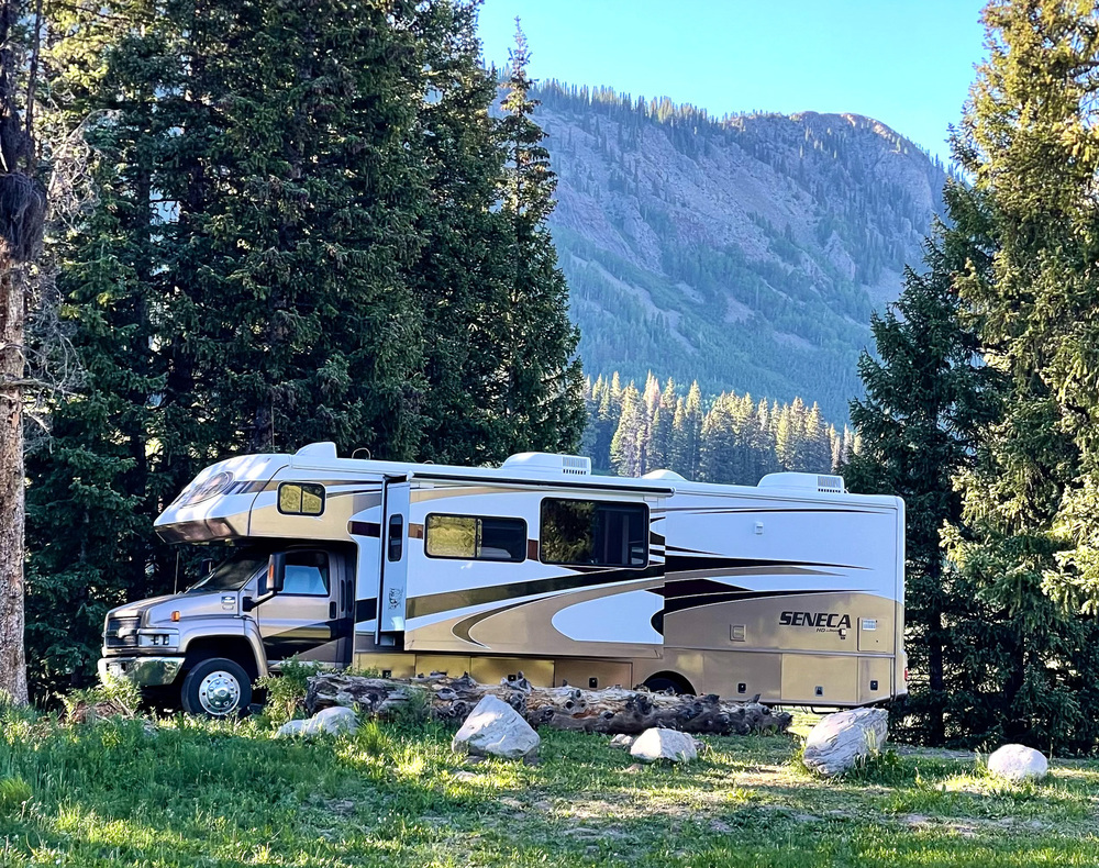 When we were shopping for this unit, there were a couple of key features that we were looking for. Being in Colorado, a diesel engine was a MUST but most of the diesel option were Class A models that were too long for our style of travel/camping and Class B models that were too small for our growing family. This Super C was the perfect size in that it had plenty of interior space for us with out sacrificing maneuverability. It being only 35ft long allows us to visit most national parks. Another great feature about this coach that separates its from other Class Cs is that it is on Chevy 5500 platform as appose to the popular Ford E-350 and 450 chassis. The Chevy C5500 is much more robust and most importantly for us, has significantly more ground clearance than the Ford options. The Ford platforms have such poor ground clearance that they have issues even driving over large speed bumps or pulling in and out of driveways. I knew that was not going to work for us because we prefer dispersed camping far more than we do RV parks and the Ford coaches would have never been able to access these locations.