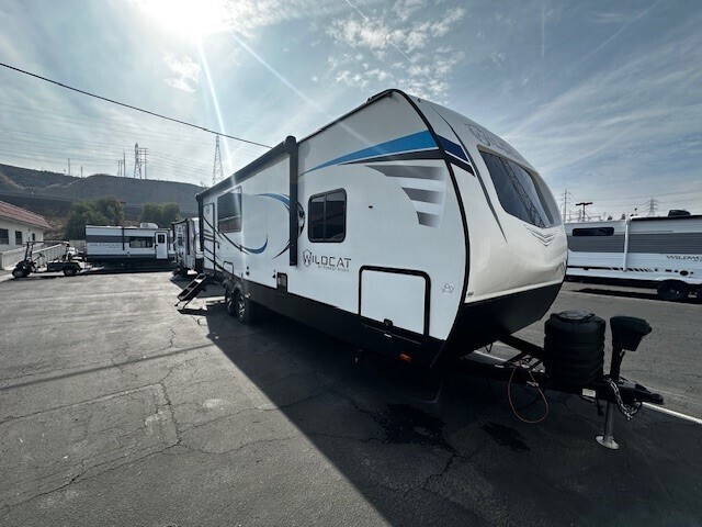 For quickest response call Ryan Lough or Paul Johnson at Mike Thompson's RV 24/7 @ 909-346-3941 (NOT A TEXTABLE NUMBER)! The used 2022 Wildcat 247RKX is a floor plan that has it all in a smaller package. A comfortable sofa sits across from a spacious kitchen and pantry.