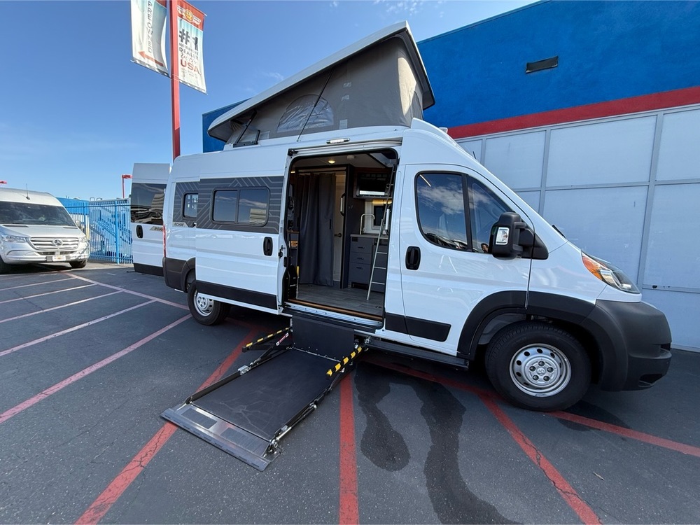 For quickest response call Kevin Fossum at Mike Thompson's RV 24/7 @ 714-660-7625 (NOT A TEXTABLE NUMBER)! BraunAbility WHEELCHAIR LIFT! The 2023 Winnebago Roam 59Z is a factory built wheelchair accessible RV with everything designed to be reached by someone with limited mobility. It's on the Dodge Promaster chassis and its fuel efficient so you can use it as a daily driver. It has all of the options you would expect including; LCD TV, inverter, navigation and so much more.
