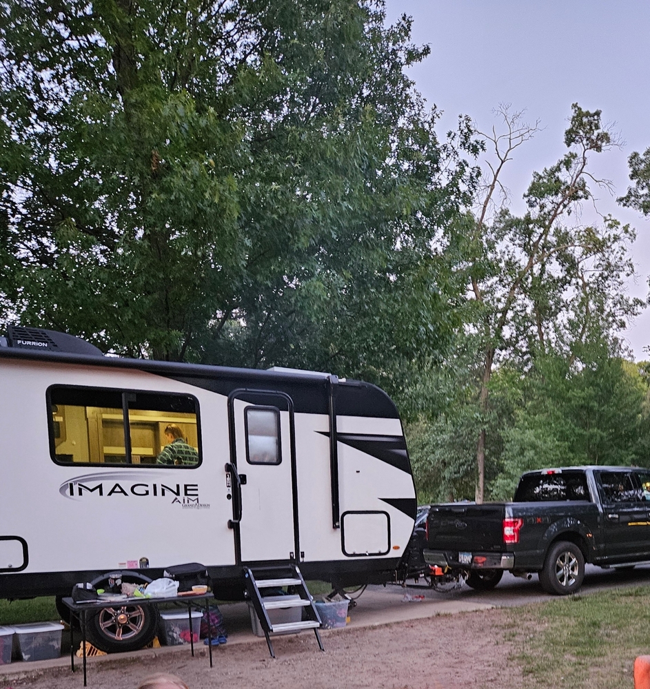2023 Grand design Aim. Sleeps 4. Queen murphy bed with new memory foam mattress. Power tongue jack, power slide and power awning. Solar. Tankless hot water. 2 bunks. Bar with 4 bar stools. outside shower. Backup camera. Ladder to roof. 13,500 BTU A/C. Outside grill. Convection/microwave oven. No problems.