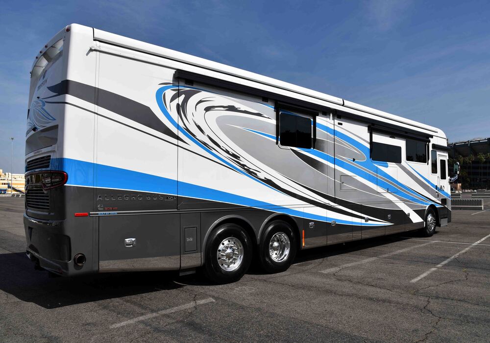 2023 Tiffin ALLEGRO BUS 45OPP with (( 605 HP CUMMINS )) and very low miles (12,700) , loaded with all the best options + 6 large solar panels. Comes in a striking White/Blue exterior with a sophisticated Light Gray interior. This luxury motorhome is in excellent overall condition. Factory features include top-of-the-line amenities designed for comfort and convenience, making it an ideal choice for those seeking a premium travel experience. This bus has been well cared for and it clearly shows, no pets, non smoker, stored inside. Please call anytime with any and all questions.