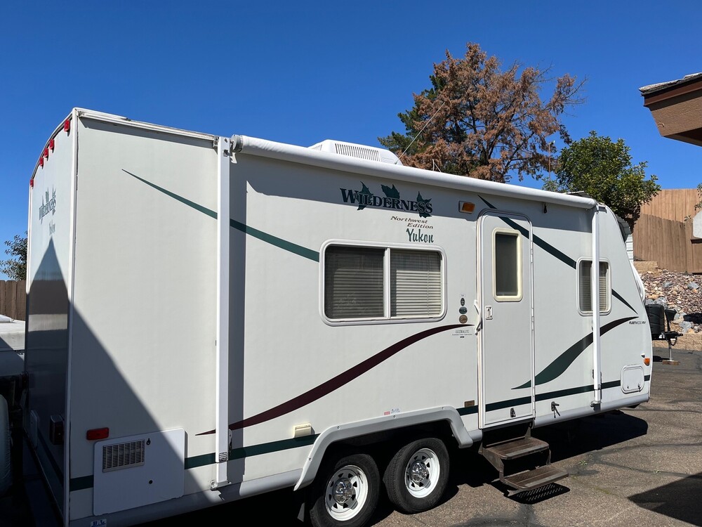 2004 Fleetwood Yukon Wilderness trailer. In good condition sleeps 3-4. Air Conditioner, electric/propane water heater, forced air heater, residential queen bed, booth dinette that makes into a bed, Tub/shower combo, electric/propane refrigerator, microwave, propane stove and oven. Lots of storage and dual batteries. Lightweight to be towed with a 1/2 ton truck. $ 6,000 Please call Six One Nine-315-5346