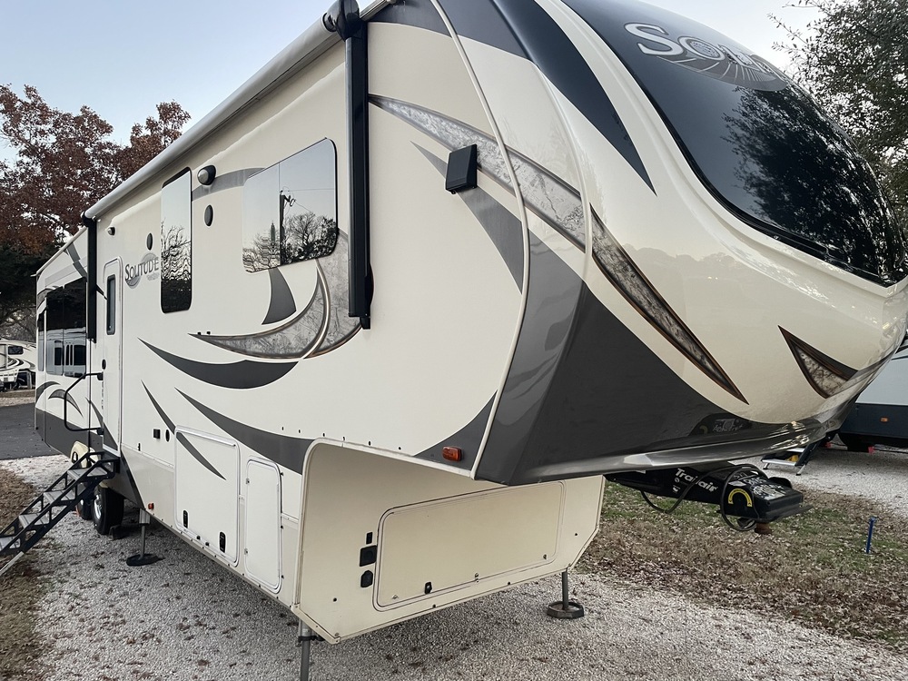 All carpet has been removed to make for easy cleaning. Spacious living space with tv and fireplace. Pullout couch has minor peeling and the recliners have major peeling so we have covers on them. We plan to remove the benches we added in the dining area, you could add benches or chairs to suit your needs. Kitchen has a great island, lots of cabinets, a large pantry, gas stovetop/oven, residential fridge (can only run when hooked up to power unless you want to install an inverter). Bunk room has a large cabinet with a bar for hanging clothes, 3 drawers and small desk area. It could also function as an office if you don’t want the bunk beds! Master has large closet and dresser, storage under bed, washer dryer hookups, tv mount if you want to add a tv. Bathroom has large cabinets and a large shower with bench seat and a new shower head.