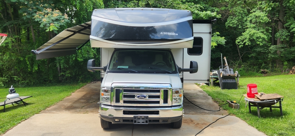 The RV is in great condition. My wife and I plus adventurous family members really loved and enjoyed using this RV. It is sound, solid, and reliable. We travelled only in the Carolinas, Virginia, and Tennessee. In the five years we've owned it as the second owner, we have only put 10,000 miles on the vehicle. With the automatic leveling jacks, setting up the RV at a campground is a breeze. All the hookup attachments are included with the RV. The RV was used once in 2024 for a long weekend within 60 miles of home. We bought a vacation home recently and no longer need the RV. It was so much fun for the years we used it! This is really a nice, nice RV.