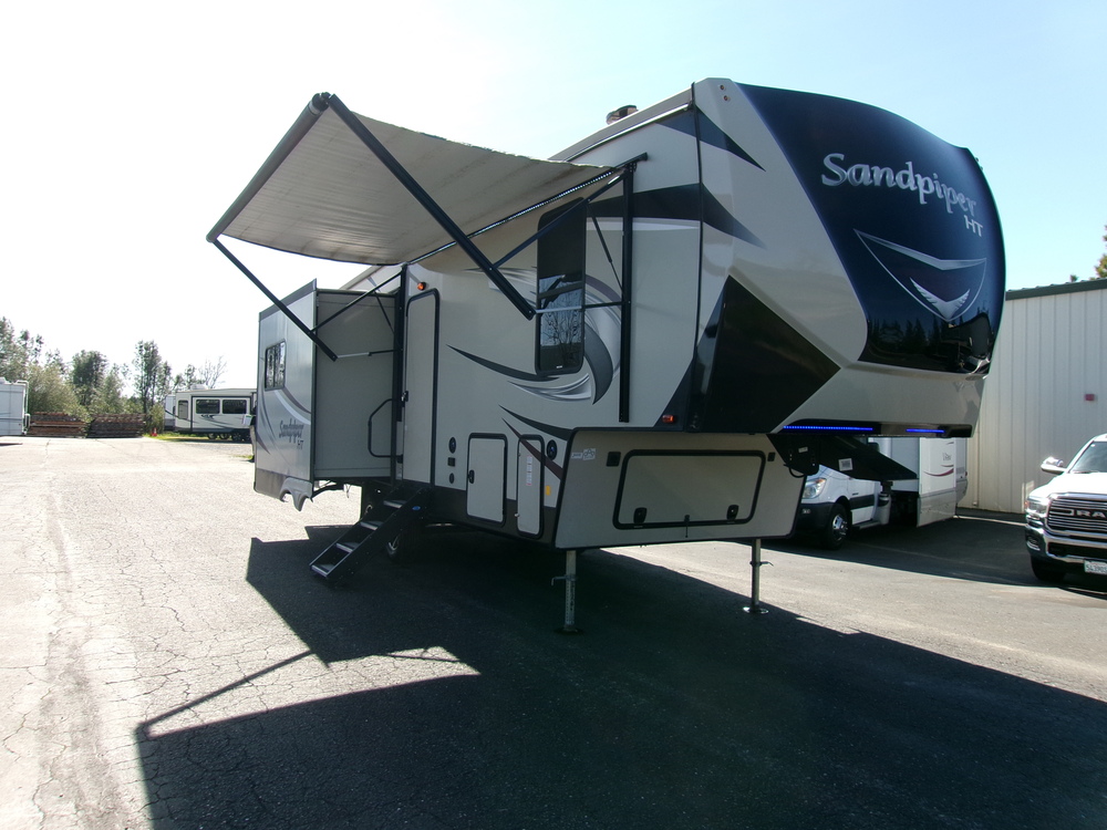 THIS 2019 FOREST RIVER SANDPIPER 2850RL 3 SLIDE 5TH WHEEL IS IN BEAUTIFUL CONDITION!! THE LAYOUT OF THE SANDPIPER FEELS VERY SPACIOUS!! IT IS EQUIPPED WITH LEATHER SWIVEL ROCKING RECLINER CHAIRS, LEATHER SOFA SLEEPER, FIREPLACE, DUAL ENTRY INTO THE BATHROOM, TONS OF CLOSET SPACE, TV, ELECTRIC AWNING WITH LED LIGHTS, OUTDOOR SPEAKERS, STORAGE RACK ON BACK, AUTO LEVELING JACKS, AND MUCH MORE. IF INTERESTED IN LOOKING AT THIS LIKE NEW 5TH WHEEL PLEASE CONTACT SCOTT AT 916-225-6218 DEALER#45205. THANK YOU!