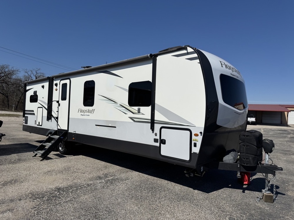 I have a super clean and nice 2020 Flagstaff Super Lite 29RKWS. This is a 35ft 6 sided full aluminum framed laminated fiberglass luxury light weight travel trailer with 2 slide outs that weights 7,400lbs. This rig is turn key and includes a Equlizer weight distribution hitch and all the hookups. This rig is fully equipped. It features a power front and power stabilizer jacks, 2 large electric patio awnings that cover the whole side of the trailer, frameless tinted windows, outside refrigerator and cooktop, flat top griddle, outside table and much more. This rig has aluminum wheels, spare tire, ladder and dual ducted A/C’s. Inside the amenities continues. It has a huge living area with a trifold sofa, dual heated, massaging theater seats, north dinette that makes a bed, huge LED TV, fireplace, tons of solid surface counter space, full kitchen with double door refrigerator, a side aisle with a fully enclosed private bathroom with dual entry, china toilet and glass shower enclosure. The private master suite has abundant room, a walk around queen bed, a wardrobe slide out, Vizio LED TV and a front windshield for a light and bright bedroom. Flagstaffs feature plywood decked floors and torsion independent suspension and are built to last. It also features heat pads on the tanks for true 4 seasons use. Tex Star RV $25,900 Rob 817/219/4479