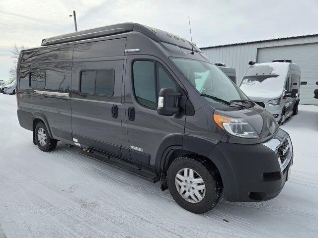 2022 Winnebago Solis 59PX, 21’0”, No Slides, 3.6L V6 Gas, 2021 Ram ProMaster Chassis, 2,800i Watt Onan QG Gas Generator, 220 Watt Flexible Surface Solar Panel, PS, Dash Air, Cruise, Radio/Rearview Monitor System, Digital Rearview Mirror, Blind Spot Assist, Crosswind Assist, Power Mirrors, Swivel Cab Seats, Side Screen Door, Rear Screen Door, Aluminum Running Board, Rod & Privacy Screen For Rear Annex, Gear Space w/ L-Track Cargo Tie Down System, Exterior Wash Station, Truma Combi Eco Heating System, Coleman Mach 10 NDQ AC Unit, Eco Hot Water System, Heated Drainage System, Monitor Panel, Roof Vent, Zipped Window Coverings, USB Charging Ports, 2 Burner Range, Microwave, Single Door Compressor Driven Fridge/Freezer 12 Volt, Sink, Dinette Seating (w/ 2 Seatbelts), Wet Bath w/ Swiveling Cassette Toilet, Shower, Murphy+ Bed, Slat Bed System, Movable Table in Sleeping Area, Pop Top Sleeping Area, Sleeps 4, Nomad Interior (Beige), Weathered Teak Wood, Granite Exterior, 4,394 Miles