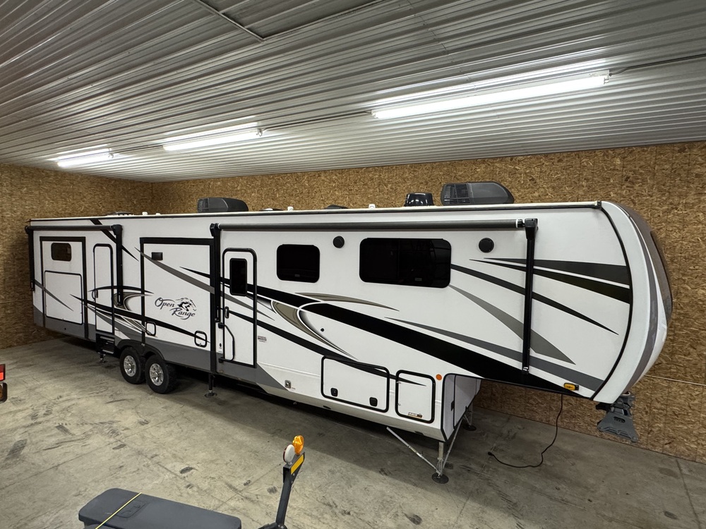 Outside, this Open Range comes with a retractable awning, outdoor kitchen, and plenty of storage for all your gear. The fifth wheel design makes it easy to tow behind a truck, giving you the freedom to explore any destination you desire.