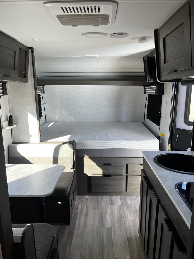 Also Includes: * SINGLE DOOR REFRIGERATOR * BOOTH DINETTE * DOUBLE BUNKS * 2 BURNER STOVE * MICROWAVE * ROOF AC * FRONT QUEEN BED * PATIO AWNING * REAR CORNER BATH * OUTDOOR SPEAKERS * SOLAR PANEL * 2 BATTERIES * WEBOOST ANTENNAE EXTENDER * OFF ROAD CAPABLE TIRES