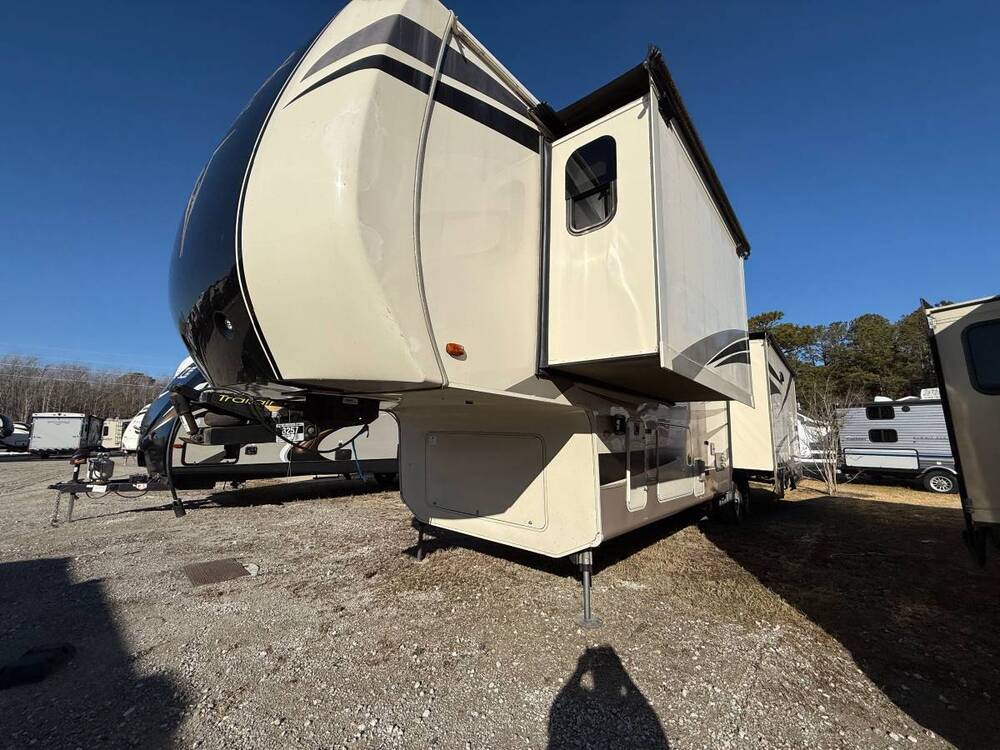 This Cedar Creek Champagne Edition model is the perfect couples coach to enjoy traveling the countryside with, or setting up home base for awhile longer in your favorite location. Model 38EL offers three spacious slide outs for increasing the interior footprint, a king bed in the master, a full bath with double sinks, plus a fireplace in the living area to enjoy!Step inside and notice the wide open living and kitchen area thanks to dual opposing slides. There is a free standing dinette with two chairs, and a theater seat for two with cup holders in the slide along the curb side front. Adjacent a slide out that features an entertainment center with area for television plus a cozy fireplace beneath to enjoy on those cooler nights when you want to just stay snugged up inside. This road side slide also features some of the kitchen appliances.You will easily be able to cook up meals and snacks while you are away from home. There is a center island that features a double sink and counter space. Along the interior wall find a pantry, plus more cabinetry and counter space. The refrigerator and stove top are found within the entertainment slide along the road side along with a convection microwave oven, more counter space, and a larger pantry for all of your dry and canned goods.At the entry door notice straight ahead a handy coat closet. Next, take the steps up on your right and find a complete bath at the top of the steps on your left. Inside enjoy a large vanity with his and her sinks, two corner medicine cabinets, a toilet, and a large shower with seat. There is also a linen cabinet for your towels.The door at the head of the hall in front leads into a spacious master bedroom. Here a slide out king or optional queen size bed provides added foot traffic space to move about. There are storage shelves on either side of the bed, plus a nightstand as well. Along the front wall a wardrobe with sliding doors that includes shelving inside. This space has also been prepped for a washer and dryer for added convenience. Opposite the bed along the curb side wall you will find a dresser with TV overhead, and a bench with storage, plus so much more!