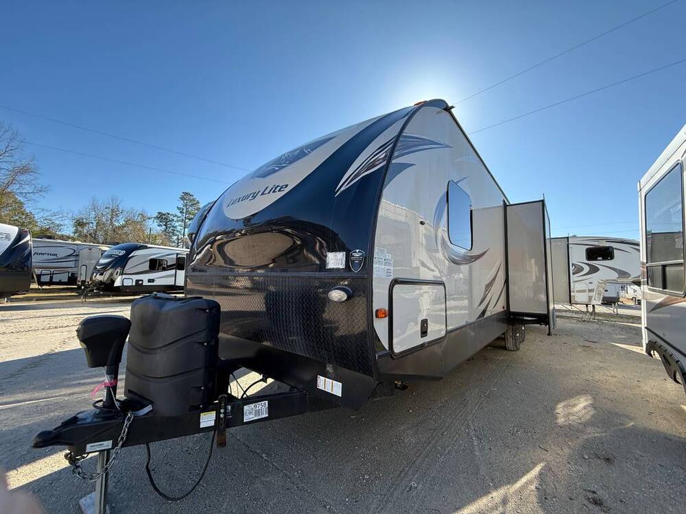 Wherever your camping adventures lead you, you will want a luxury LaCrosse travel trailer. Throughout each model you will find attention to detail from the shaker style cabinet doors, single bowl stainless steel sink, and residential J-spout kitchen faucet to the "One Touch" electric awning. You will find upgraded residential carpet with a pad, and in the living room there is an exclusive oversized MAX slide out offering nearly 40 cu. ft. of additional living space. MAX protection is found in the exclusive ETERNABOND construction which includes an enclosed and heated underbelly plus heated holding tanks and more. The mandatory Advantage Package includes the following - Universal Docking Center, electric tongue jack, a Furrion residential cooktop, solid surface countertops, a large stainless steel refrigerator, and so much more!