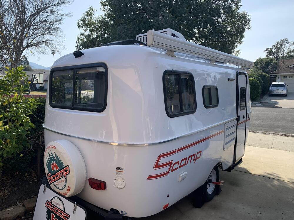 Hard to find and barely used, Scamp 16' Standard in great condition! Layout #4. Includes: bathroom/shower, AC, furnace, fan roof, propane stove, 3.7 fridge, 12 ft awning, tank monitors, and backup camera.