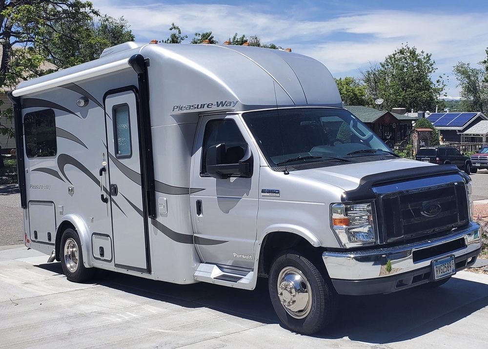 This 2014 Pleasure Way Pursuit is a Class B+ motorhome with 54,300 miles. 4 new rear tires were installed last winter. The kitchen area is equipped with a sink, plenty of storage options, a 2 burner propane stove, a new convection oven as well as a new 2 way dometic refrigerator. The living area has a high quality leather sectional and dinette table that can be converted into a queen size bed.