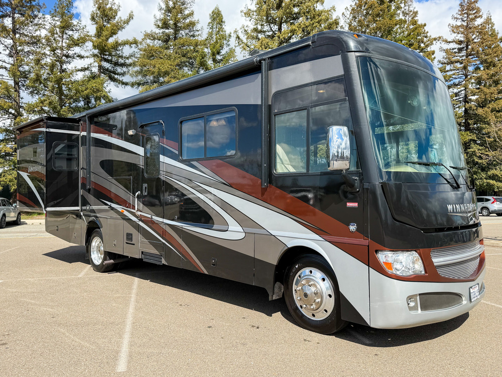 WOW...2014 WINNEBAGO ADVENTURER 32H WITH ONLY 13,300 MILES. 1 OWNER SINCE NEW. FULL BODY PAINT, AUTO LEVELING, DUAL AIR, ONAN AUTO START GENERATOR WITH 140 HOURS. TOYO TIRES, ALCOA WHEELS AND TOW PACKAGE. GREAT SIZE AND FULL BODY SLIDE. DINETTE, SOFA THAT MAKES INTO BED, PRIVATE BATHROOM, WALK AROUND BED AND PLENTY OF STORAGE. ONLY $69,995 FINANCING AVAILABLE AND TRADE-INS WELCOME! 916-747-1936