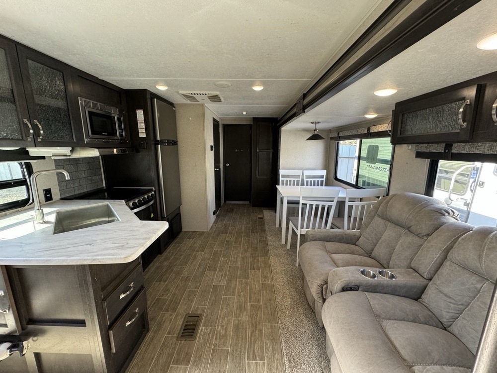 FREE DELIVERY & SETUP!! This 2019 PALOMINO PUMA 31-DBTS HAS LARGE WINDOWS. SOLAR HOOK-UP. ALL SEASON INSULATION. FRONT DIAMOND PLATE AND MUCH MORE! VERY SPACEOUS. PERFECT FAMILY TRAILER. Length 36FT GREAT FLOOR PLAN WITH DINETTE BOOTH AND SOFA SLEEPER. 2 PRIVATE BEDROOM. XL BUNKS. 2 ENTERTAINMENT CENTERS. WALK-IN BATHROOM. HARD COUNTERTOPS. Lots Of Storage. LED Lighting. Sleeps 11, 2 A/C. Super Clean. SUPER NICE TRAILER ONLY 8,363 UVW. 50AMP POWER. OUR PRICE $23,995. SEVERAL SUPER NICE RVS TO CHOOSE FROM. We are located in KENNEDALE TX. We show RV's 7 Days A WEEK. BY APPOINTMENT. Call BRET 817-805-0067 or AMY 817-658-4633 WE OFFER FREE DELIVERY AND SETUP TO ALL 48 STATES. WE INSPECT & GO THROUGH ALL TRAILERS TO INSURE OUR CUSTOMERS ARE 100% SATISFIED.