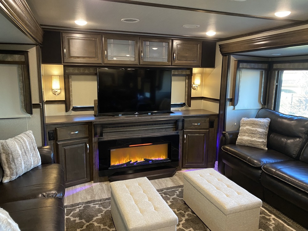 2019 Grand Design Solitude (top of the line) fifth wheel in excellent condition, 5 slides, sleeps six, 41.5 feet long, tons of basement storage with slide out trays in all bays, fridge/freezer in basement, 4 TV's, including one in basement, plumbed for washer/dryer, Arctic insulation, self-leveling system, Wally dish TV dome, incudes all cables, cords, hoses, etc., queen size bed (could easily be converted back to king) This is a full timers dream unit or perfect for set up on your property. Open to trades for smaller unit plus cash.